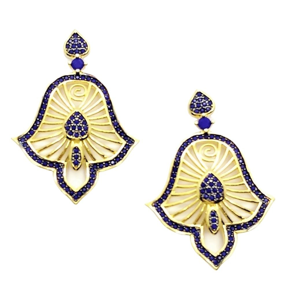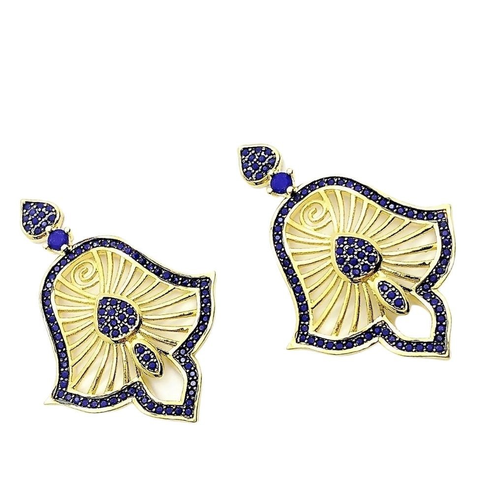 Brincos Cravejados Zirconias Azul Klein Banho De Ouro 18k 4001