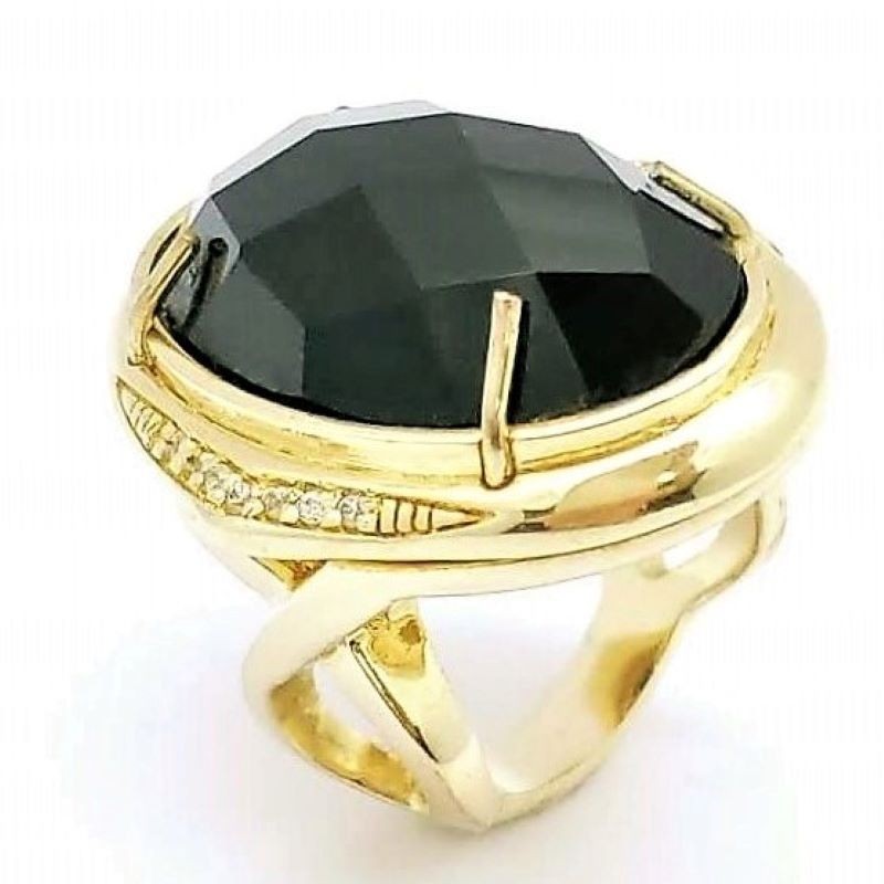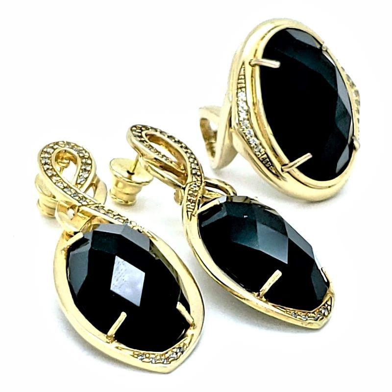 Anel e Brincos Infinito Preto Ônix Cravejados De Zirconias Banho De Ouro 18k 867 868