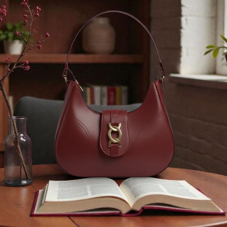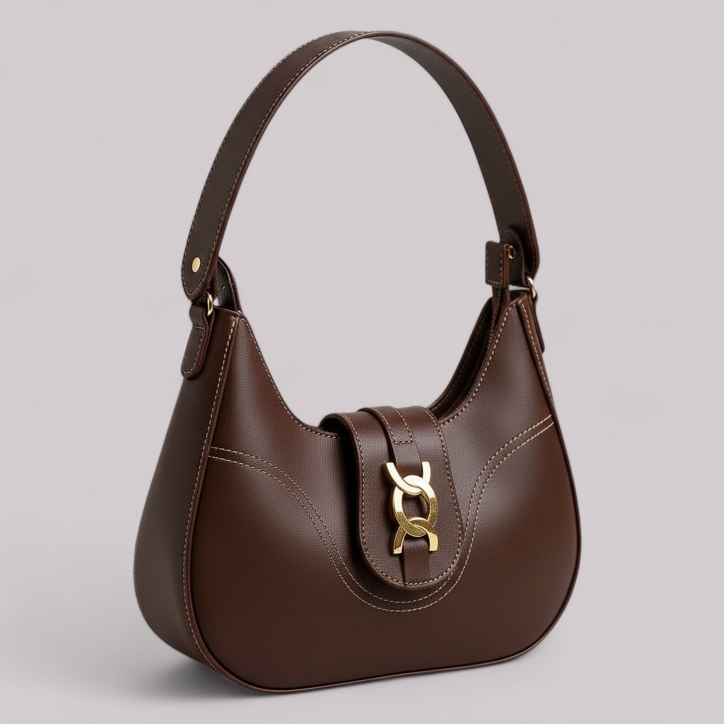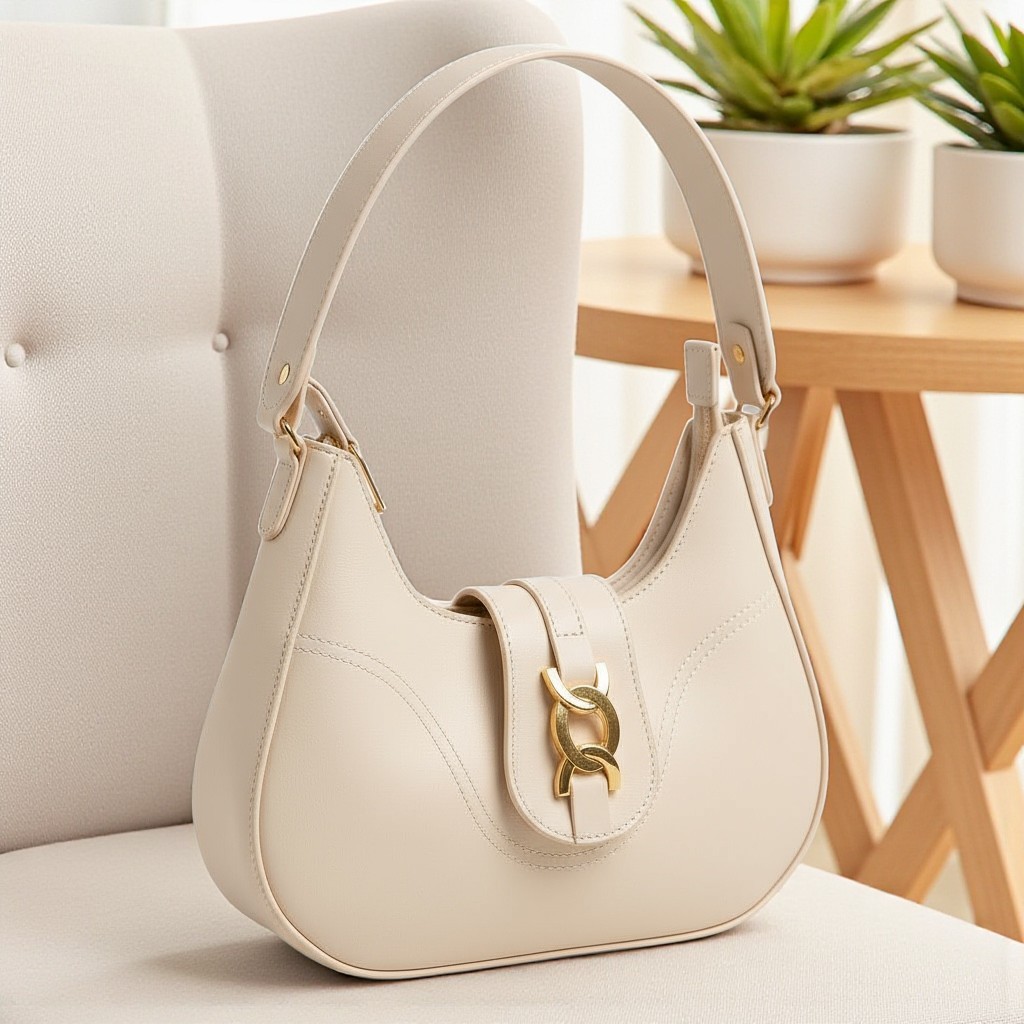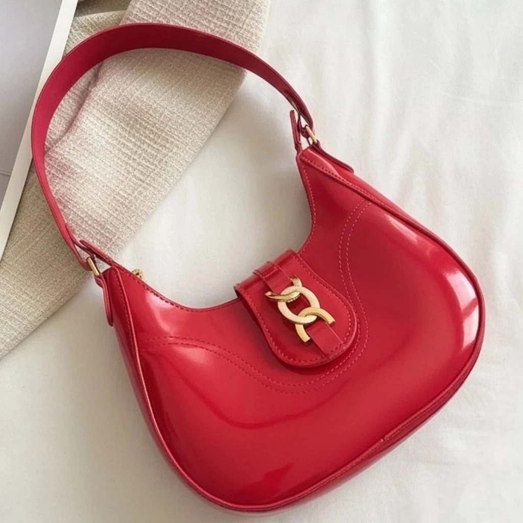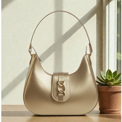 Bolsa de ombro baguete feminina , com fecho em ziper , detalhes em dourado