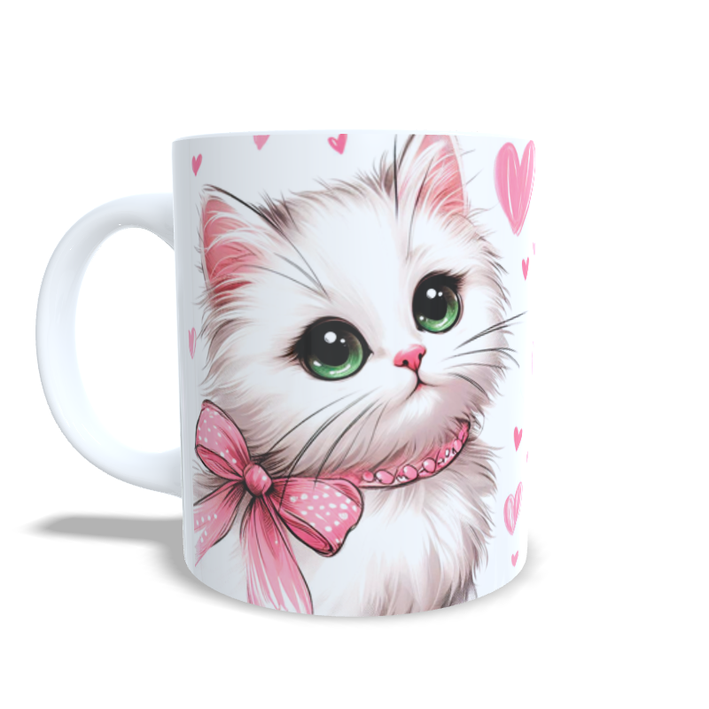 Caneca Cerâmica Personalizada Gato / Gatinho Branco - 785263
