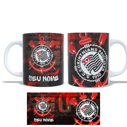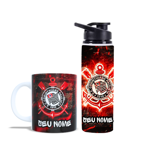Kit Caneca Porcelana + Garrafa 600ml Corinthians Personalizado Com Nome