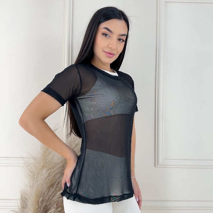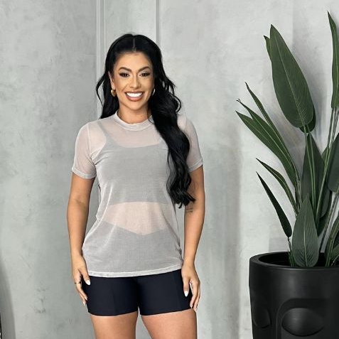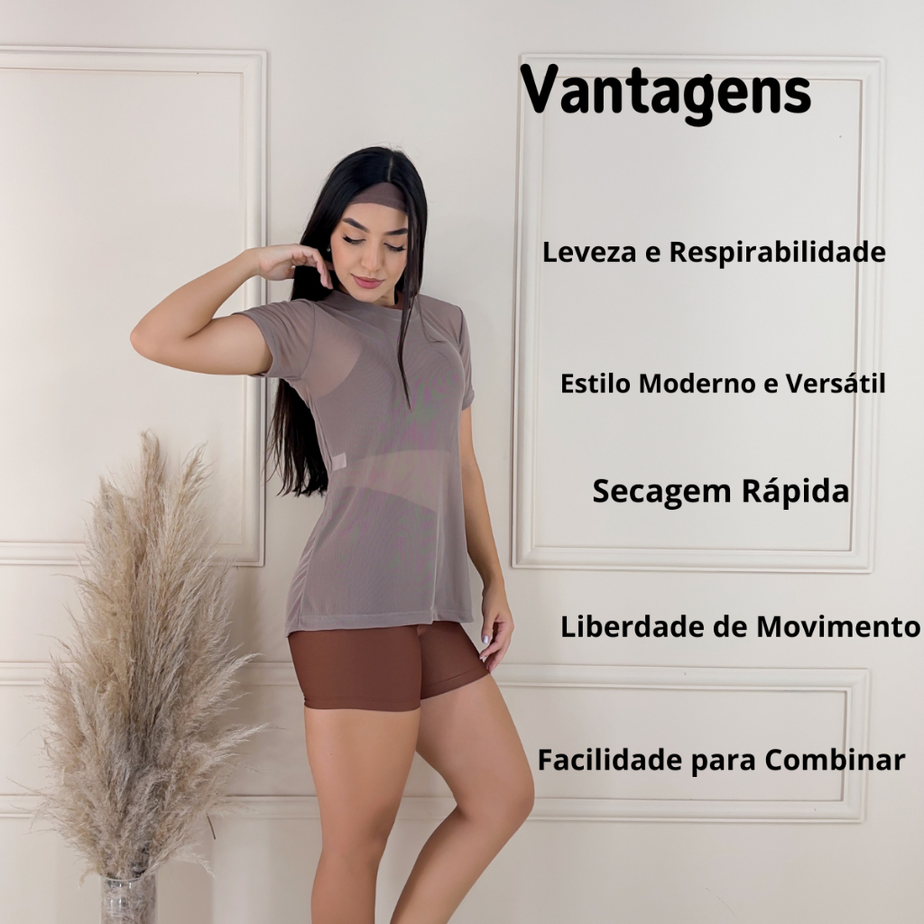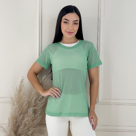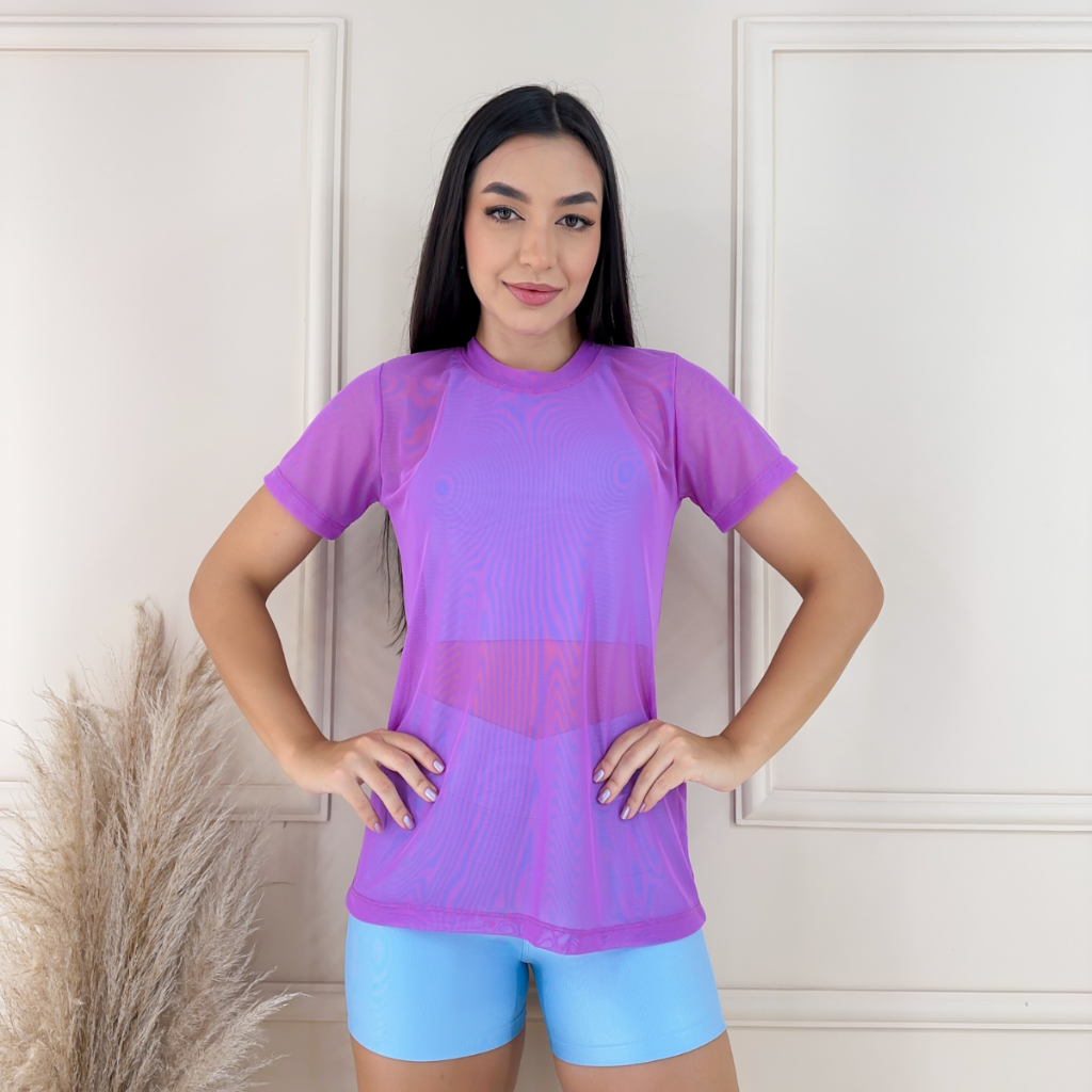 Blusa de Tule Feminina Treino Academia Fitness