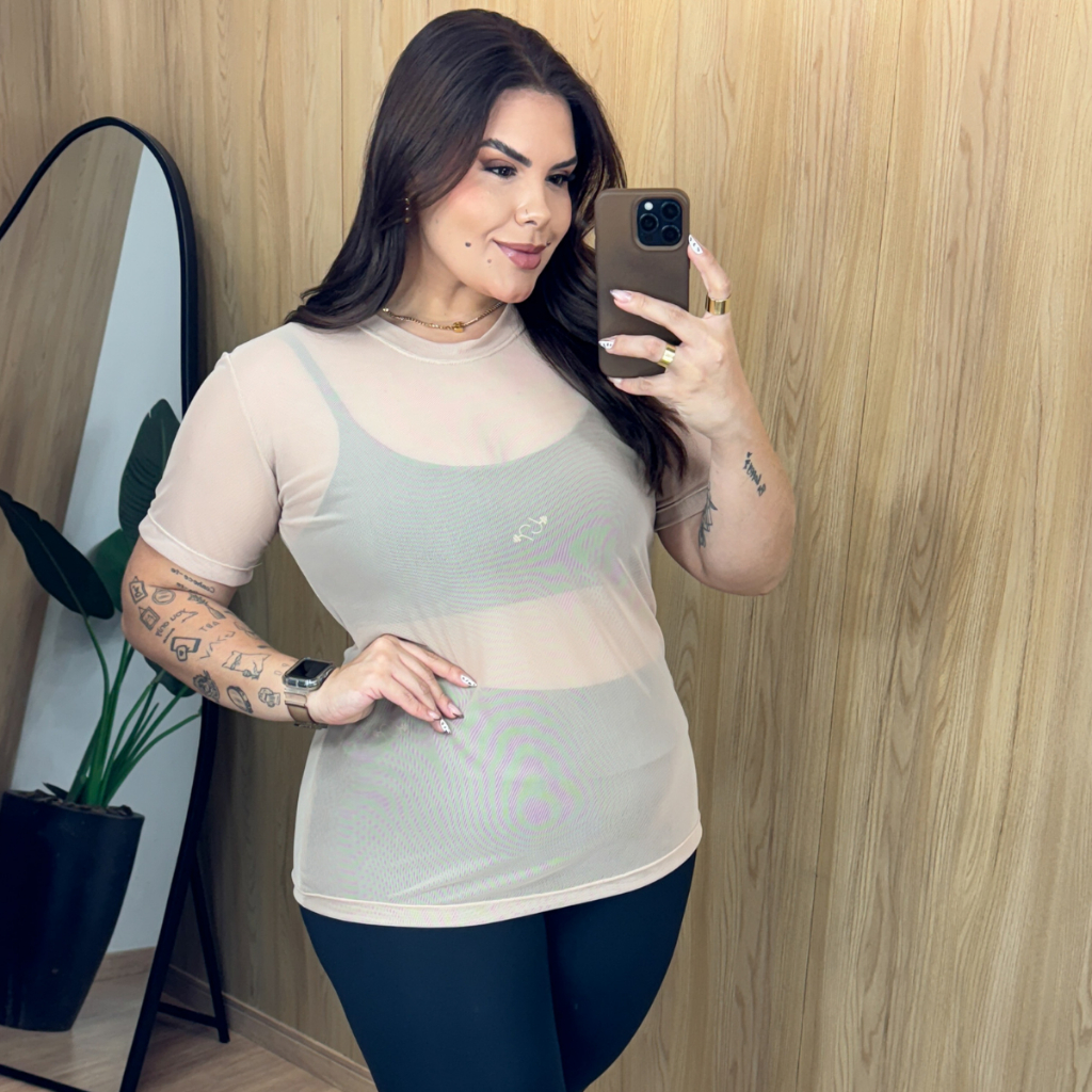 Blusa de Tule Plus Size Academia Feminina Fitness