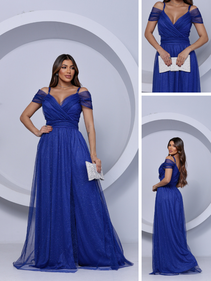 Vestido Cristal Tule com Brilho e Alça para Festas, Casamentos e Madrinhas , Formaturas e Convidadas
