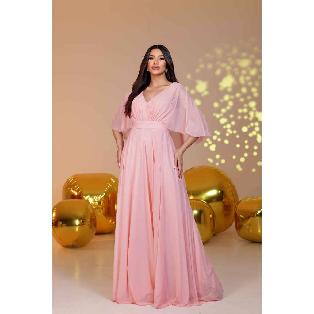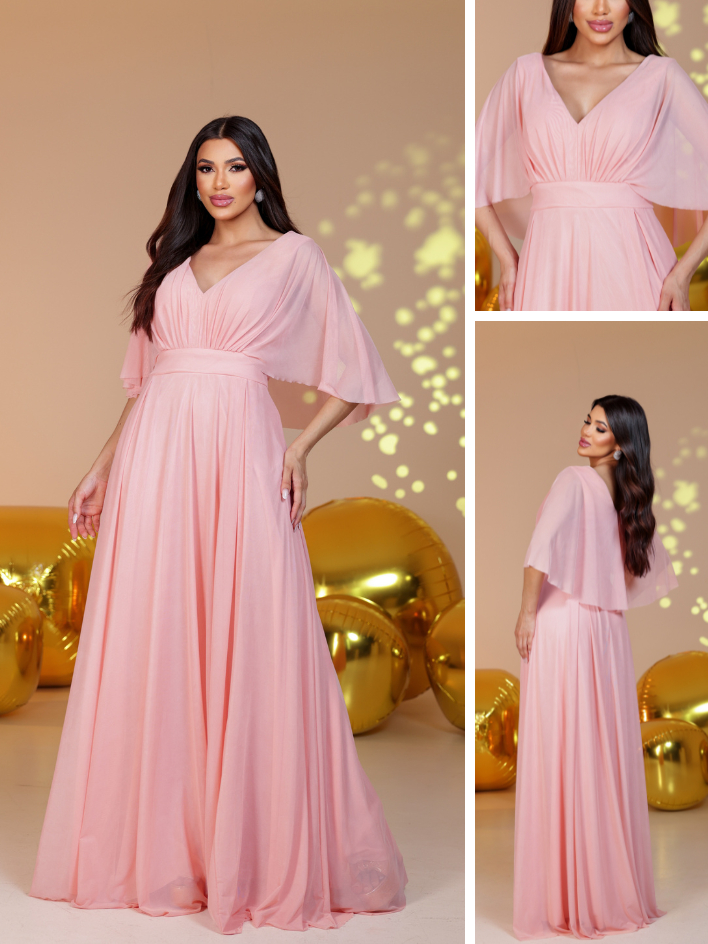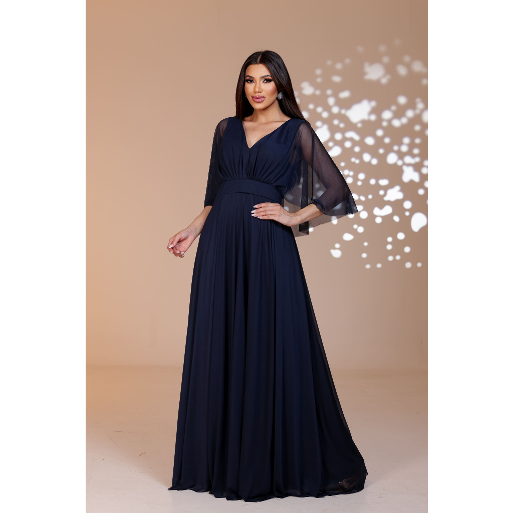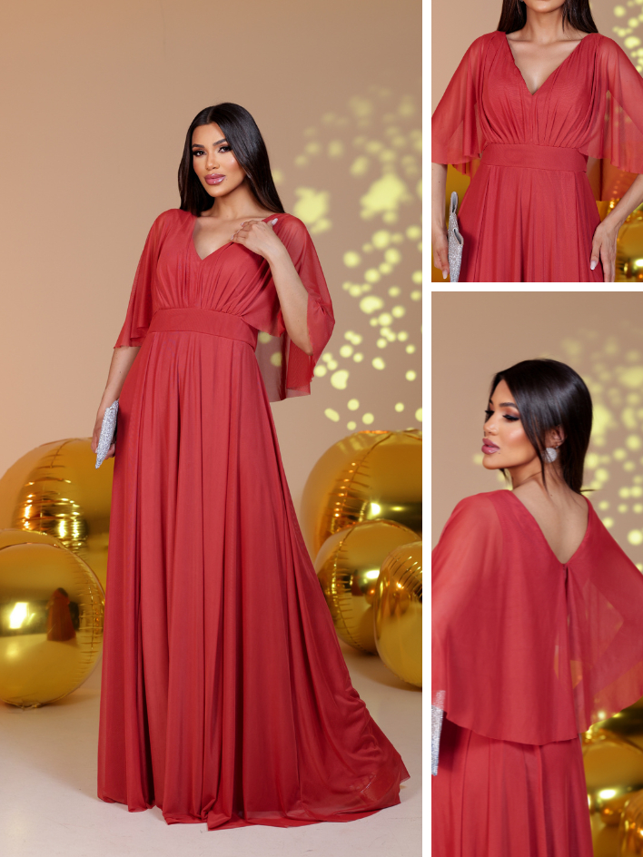 Vestido Lety de Tule com Manga Capa para Festas, Casamentos e Madrinhas