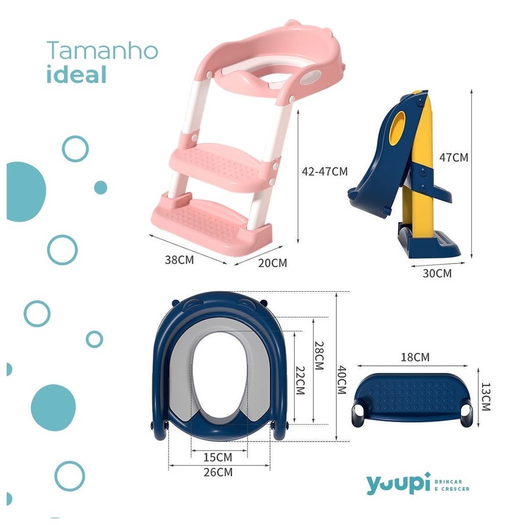 Assento Redutor Dobrável Infantil Com Escada Rosa Yuupi