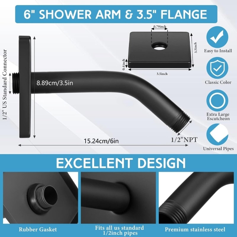 Encountera Braço Chuveiro Aço Inoxidável Grandes Flanges Quadradas Para Cobertura Furo Parede Do Banheir