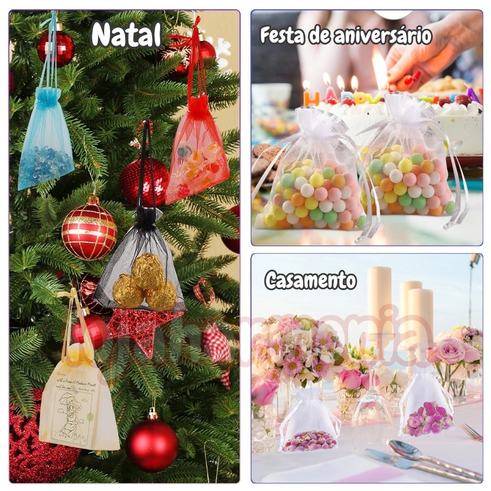 Kit 100 Un Saco Saquinho Organza Tule Saquinho 7x9 9x12 10x15 Festa Casamento (Escolha A Cor)