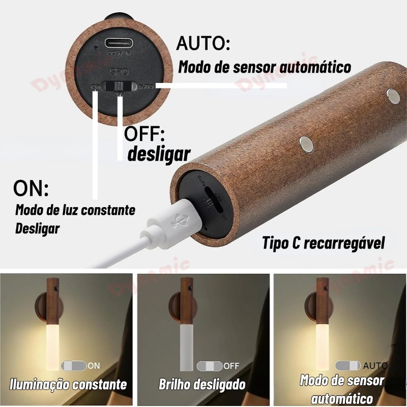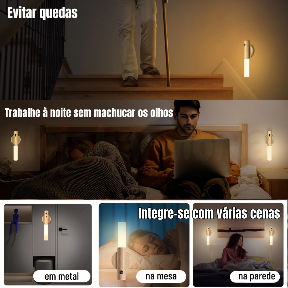 Luz De LED Noturna TYPE-C Magnética De Madeira Sem Fio De Moda Simples Brilho Multifuncional Ajustável Em Três Cores
