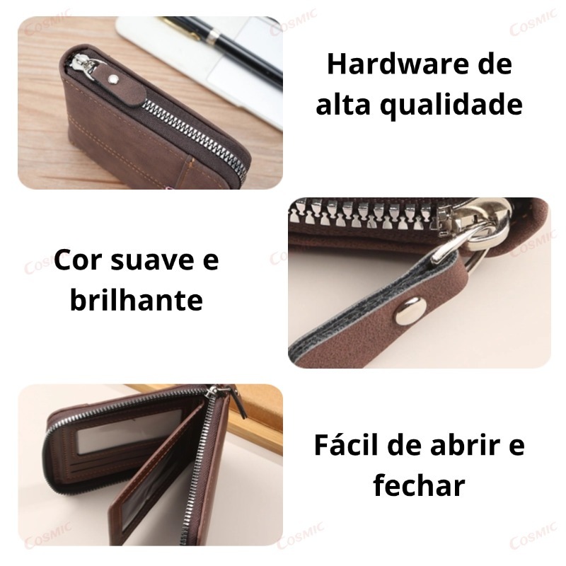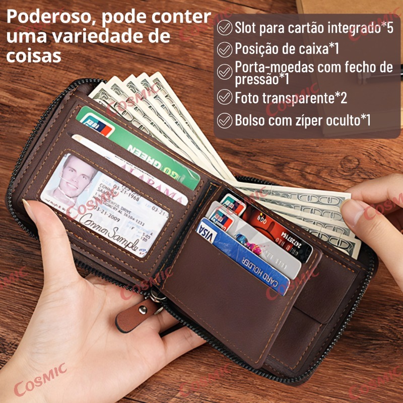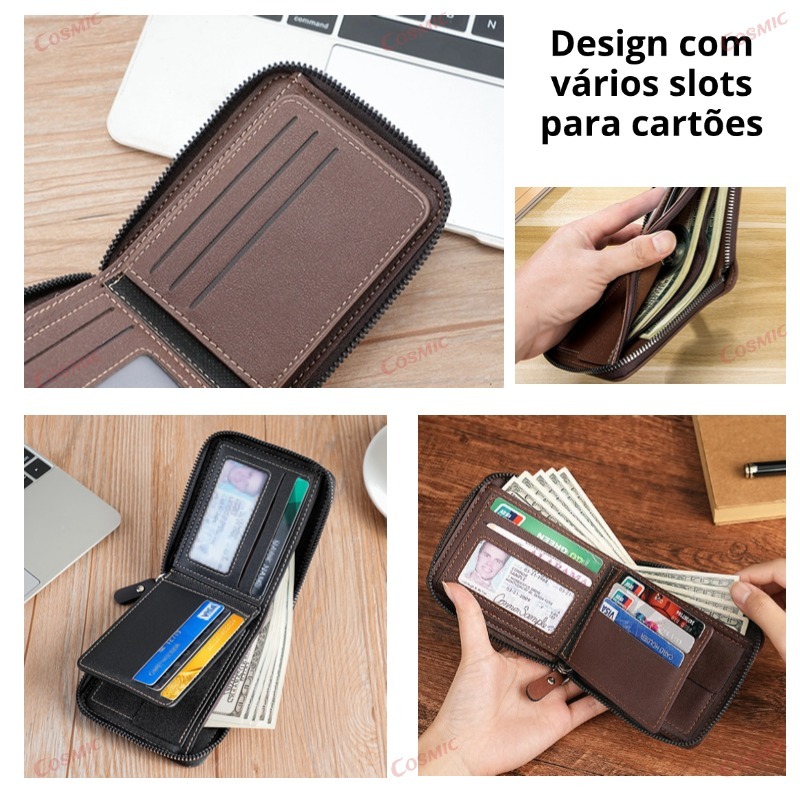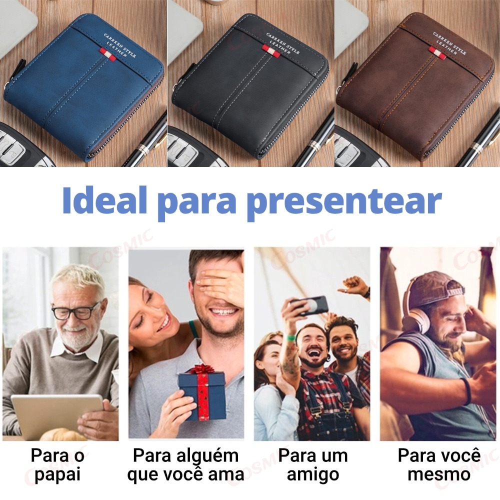Novo Estilo Carteira de Couro Multifuncional com Zíper e Porta-Cartões de Identidade Carteiras Masculinas e Femininas