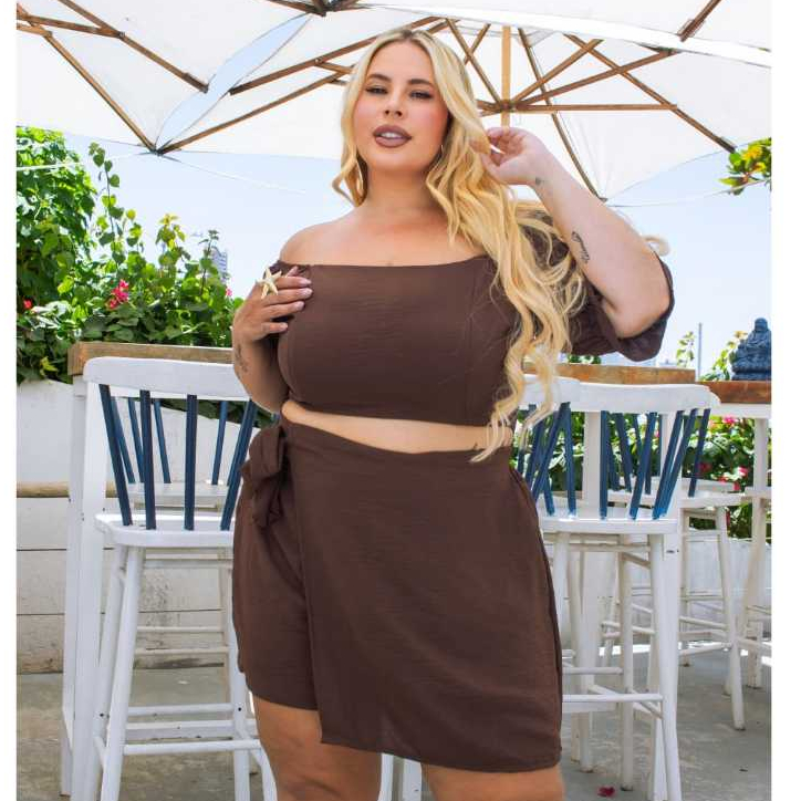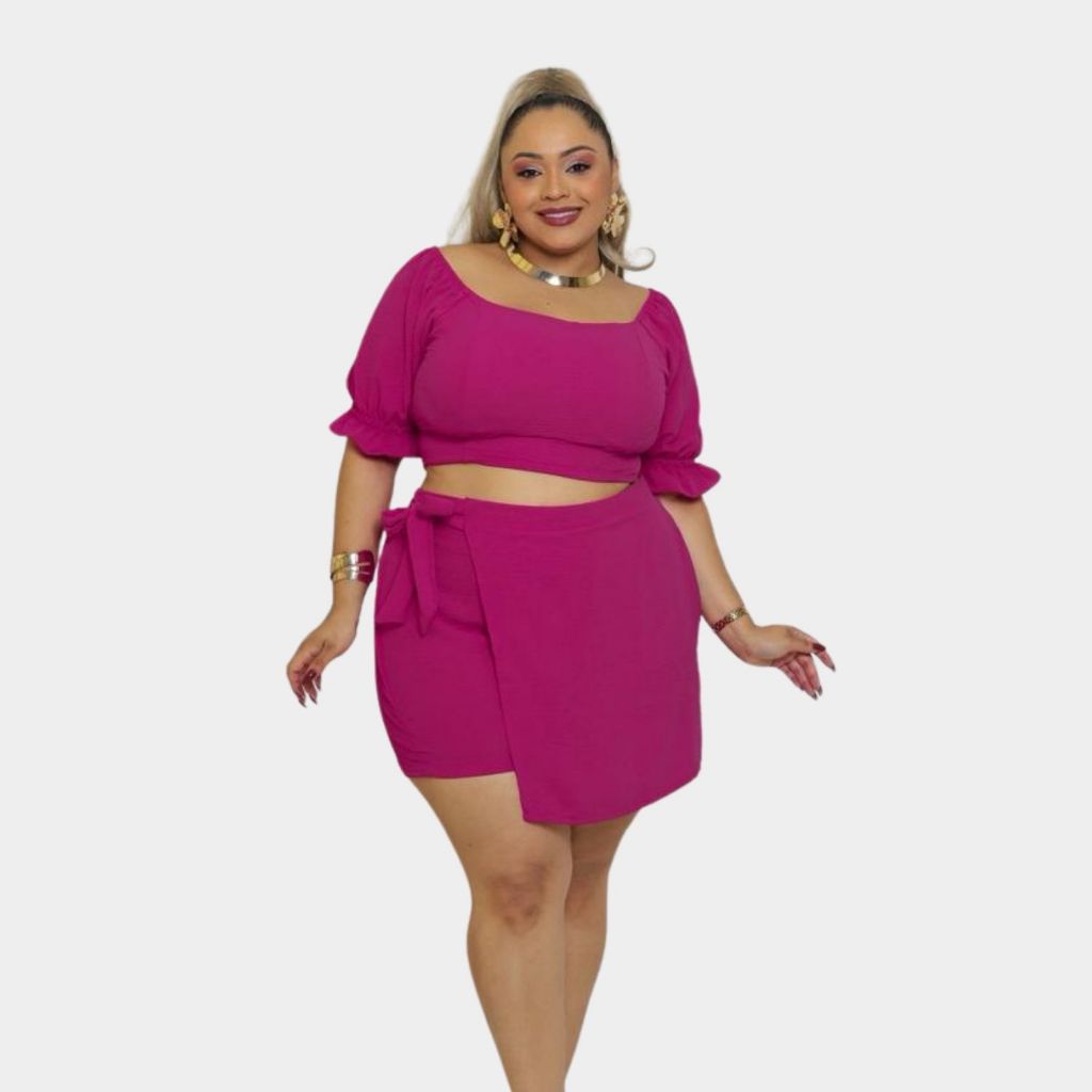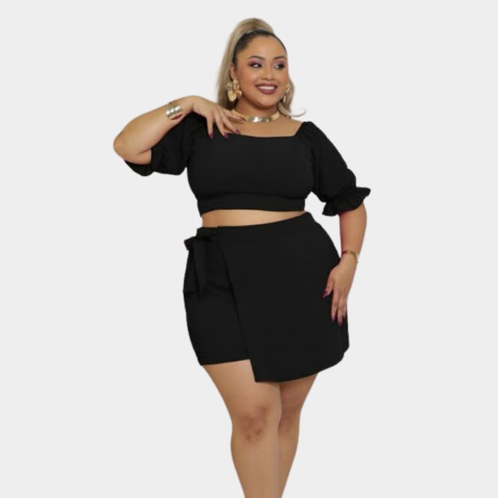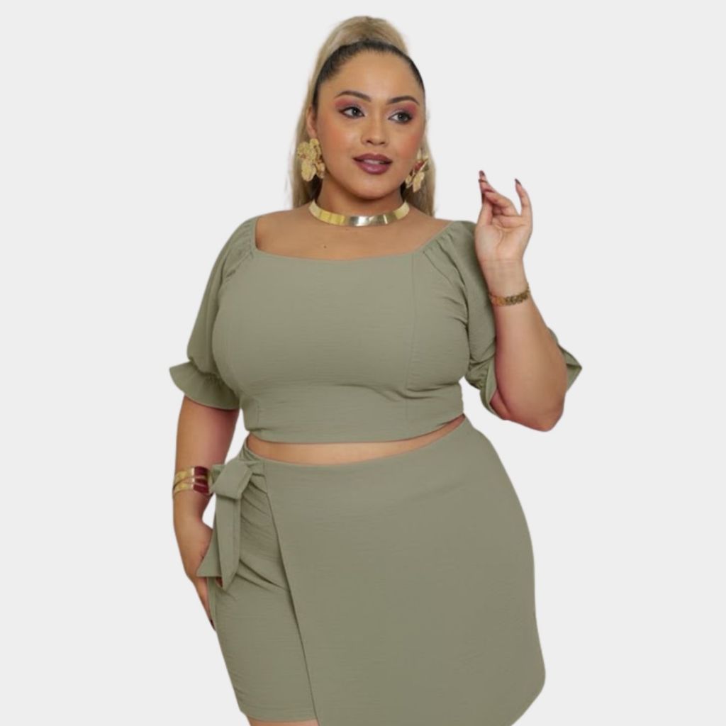 Conjunto de Cropped Short Saia Com Amarração Elastex nas costas Tecido Duna G1 G2