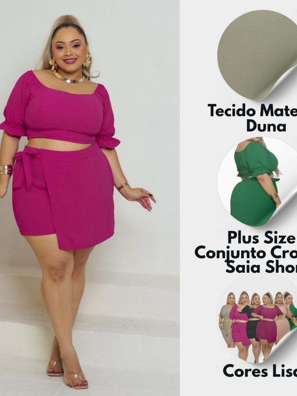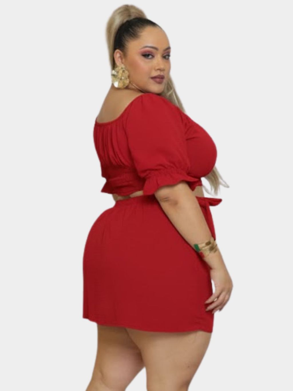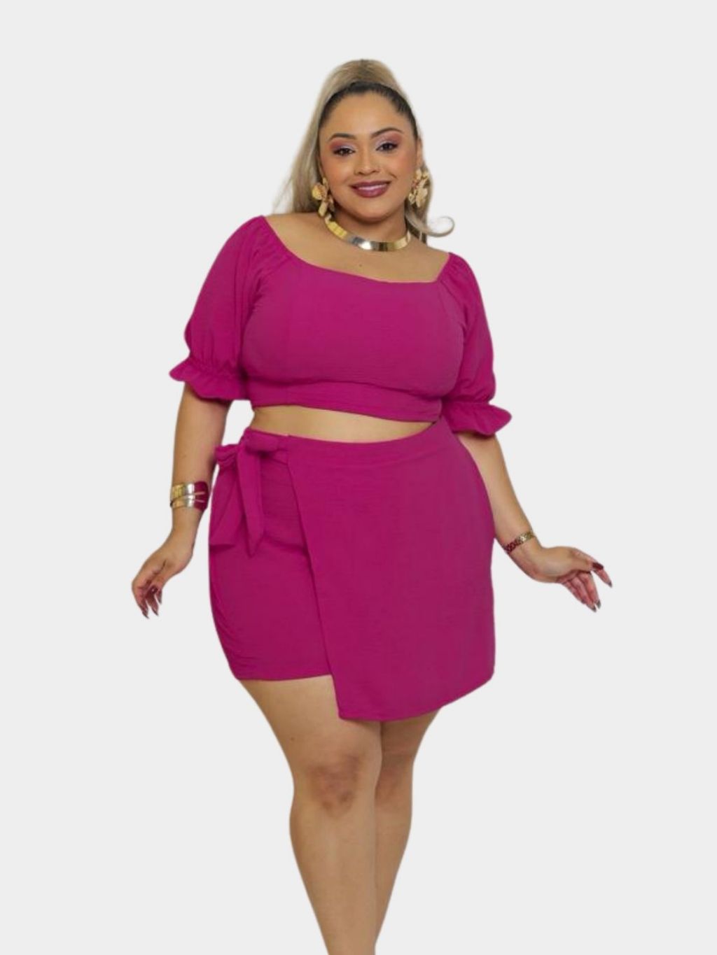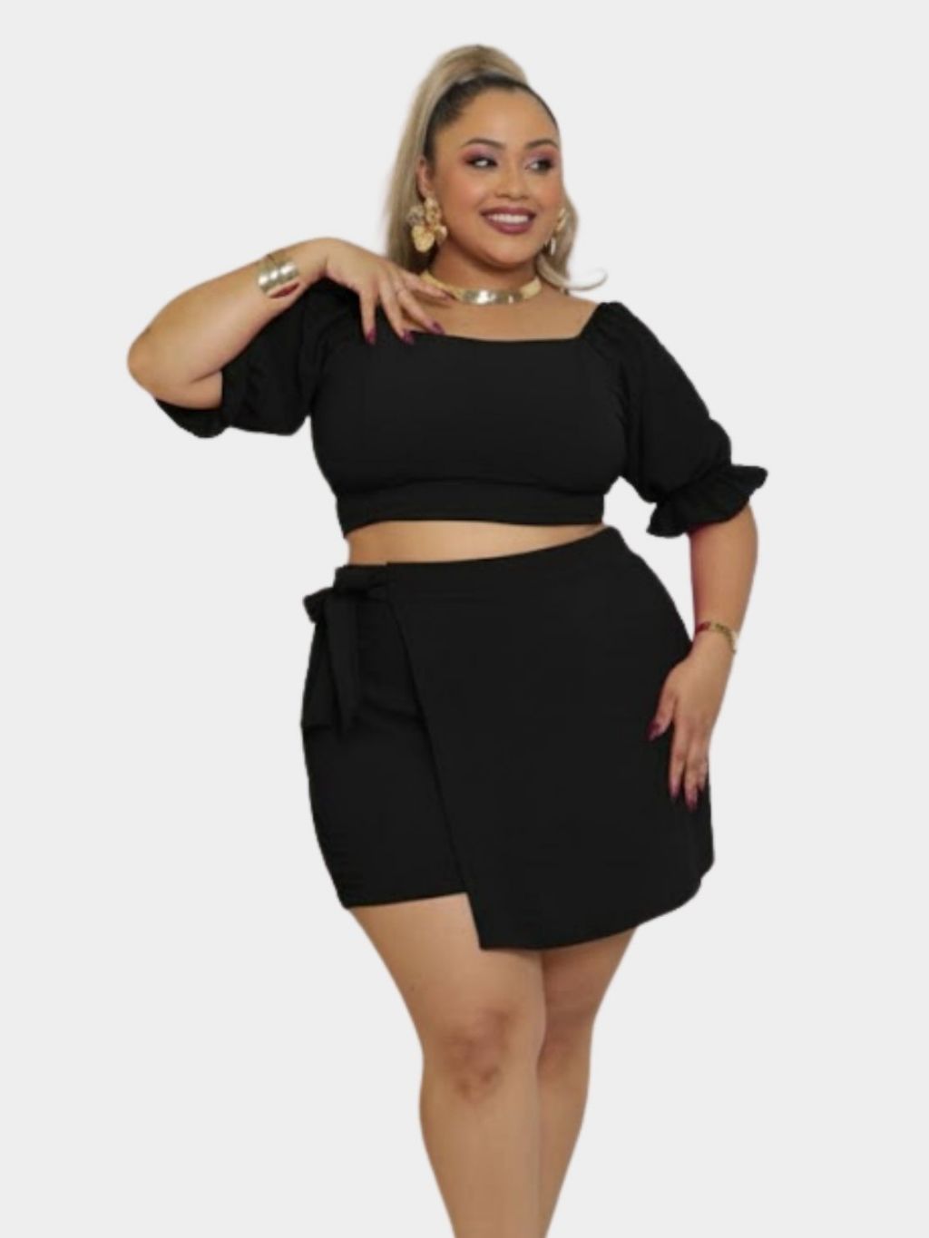Conjunto de Cropped Short Saia Com Amarração Elastex nas costas Tecido Duna G1 G2