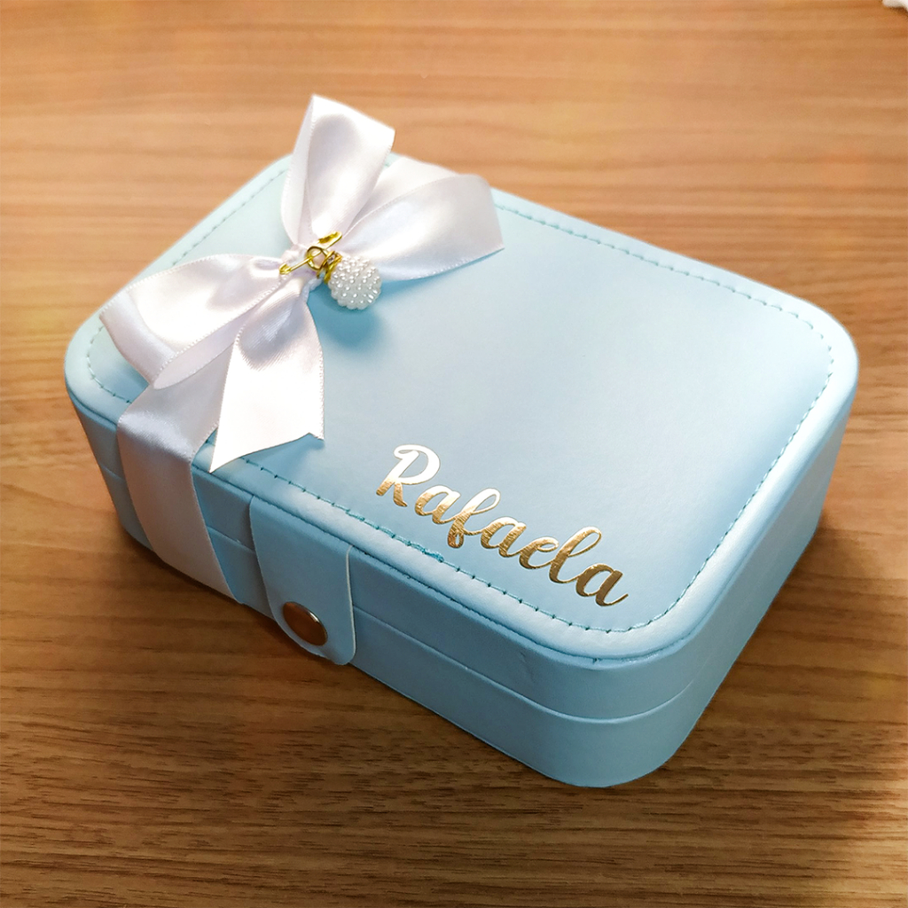 Porta Joia Personalizado com Nome em Dourado para Madrinhas de Casamento ou Presente Laço e Pingente