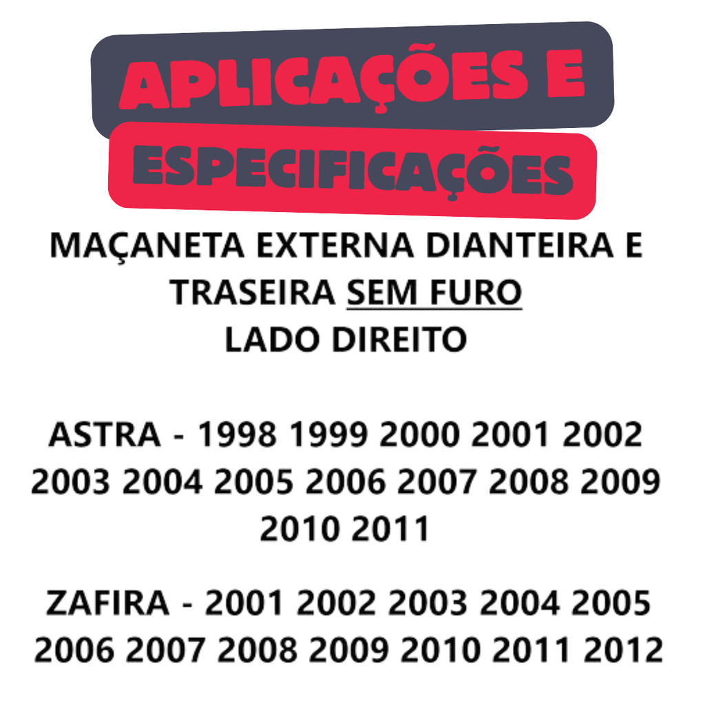 Maçaneta Externa Astra Zafira 2001 Até 2012 Dianteira Traseira Lado Direito | Universal Automotive