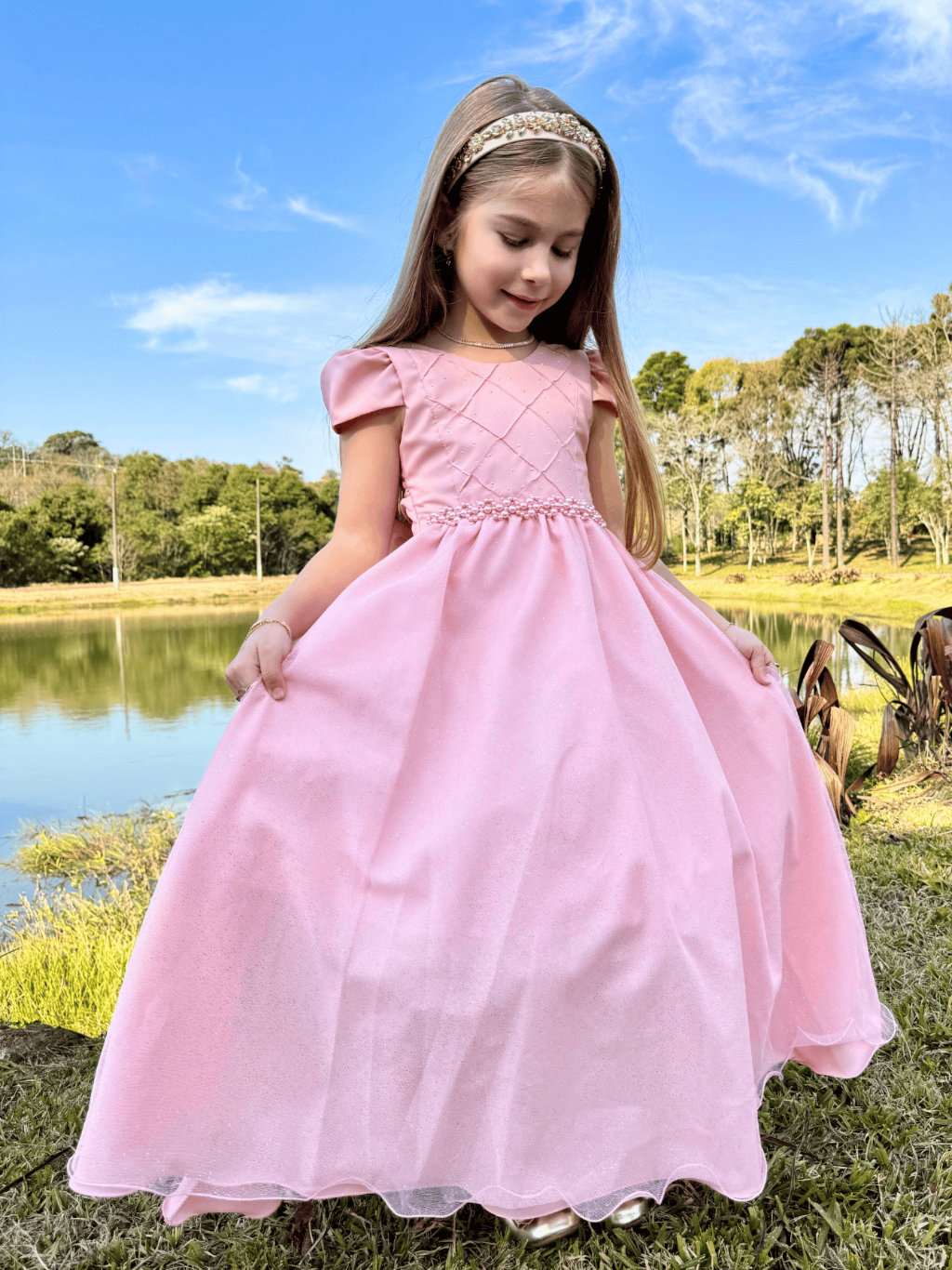 Vestido Longo Dama de Honra Luxo Voal E Brilho - Várias Cores