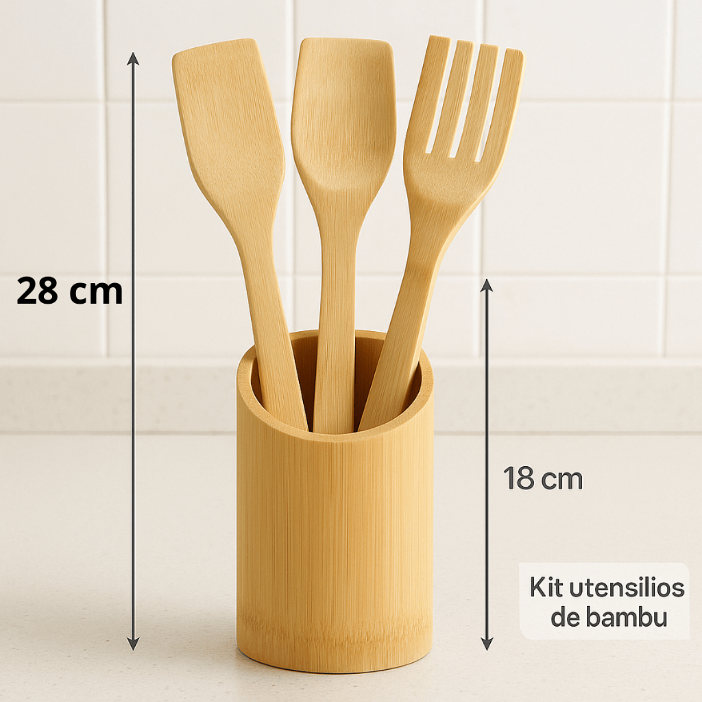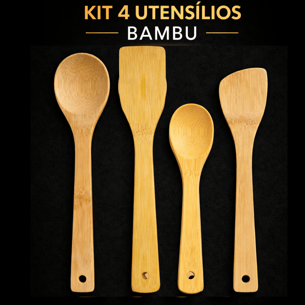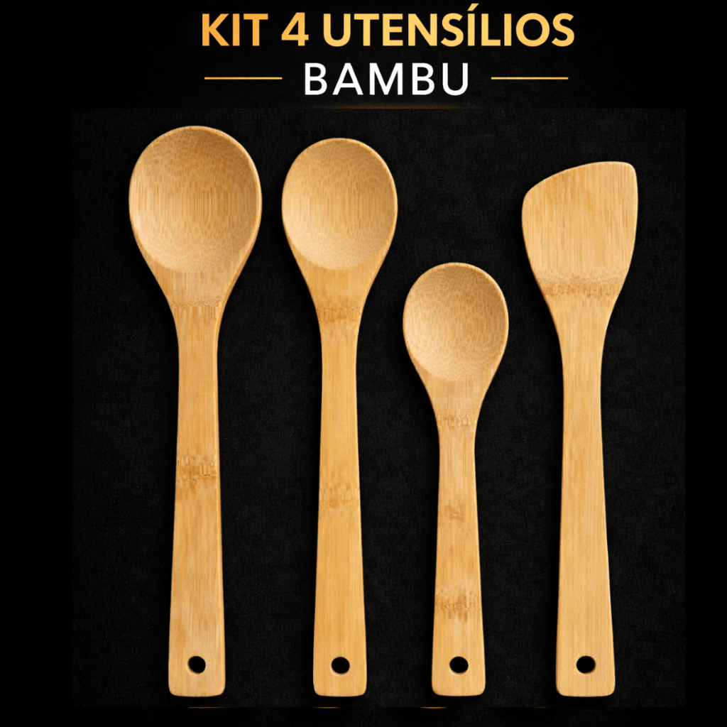 Kit Utensílios de BAMBU cozinha colher de pau, espatula com base