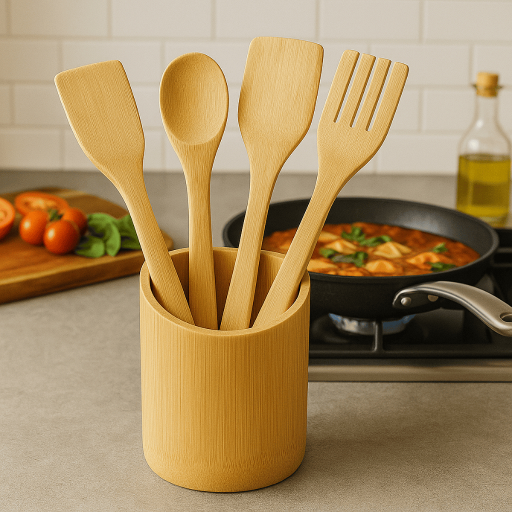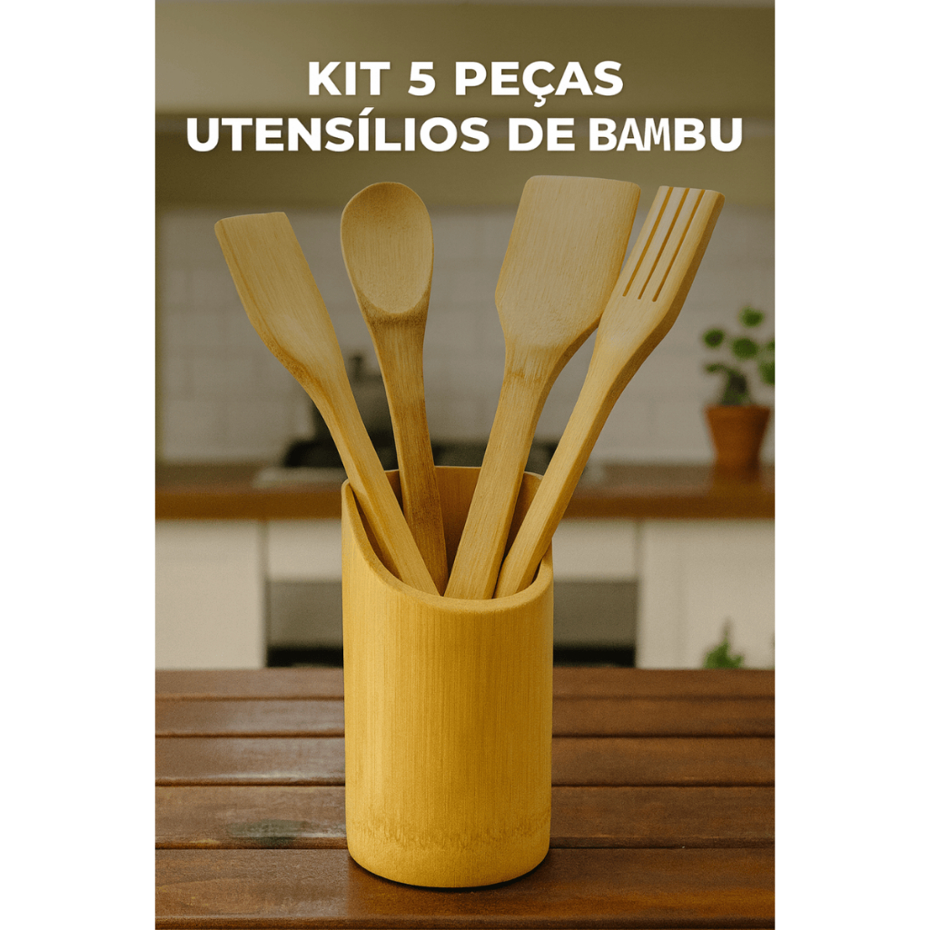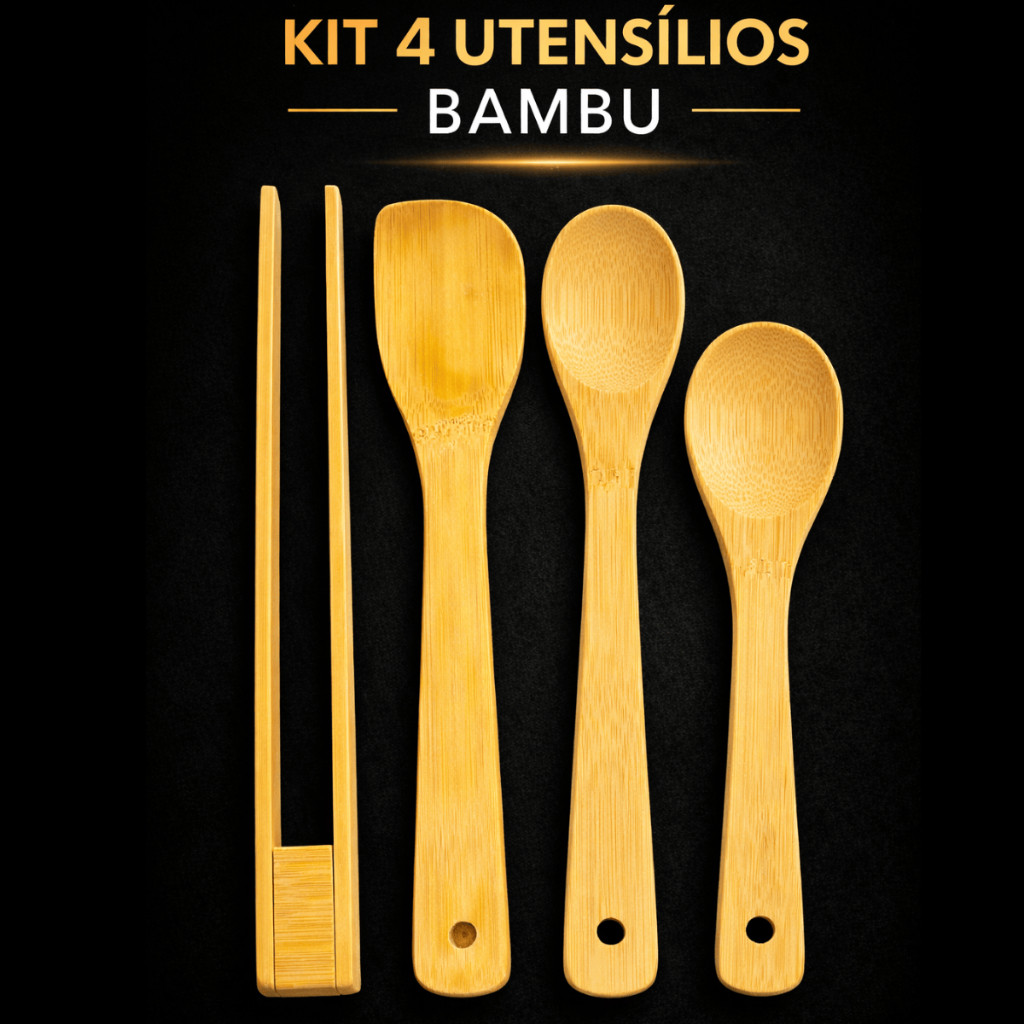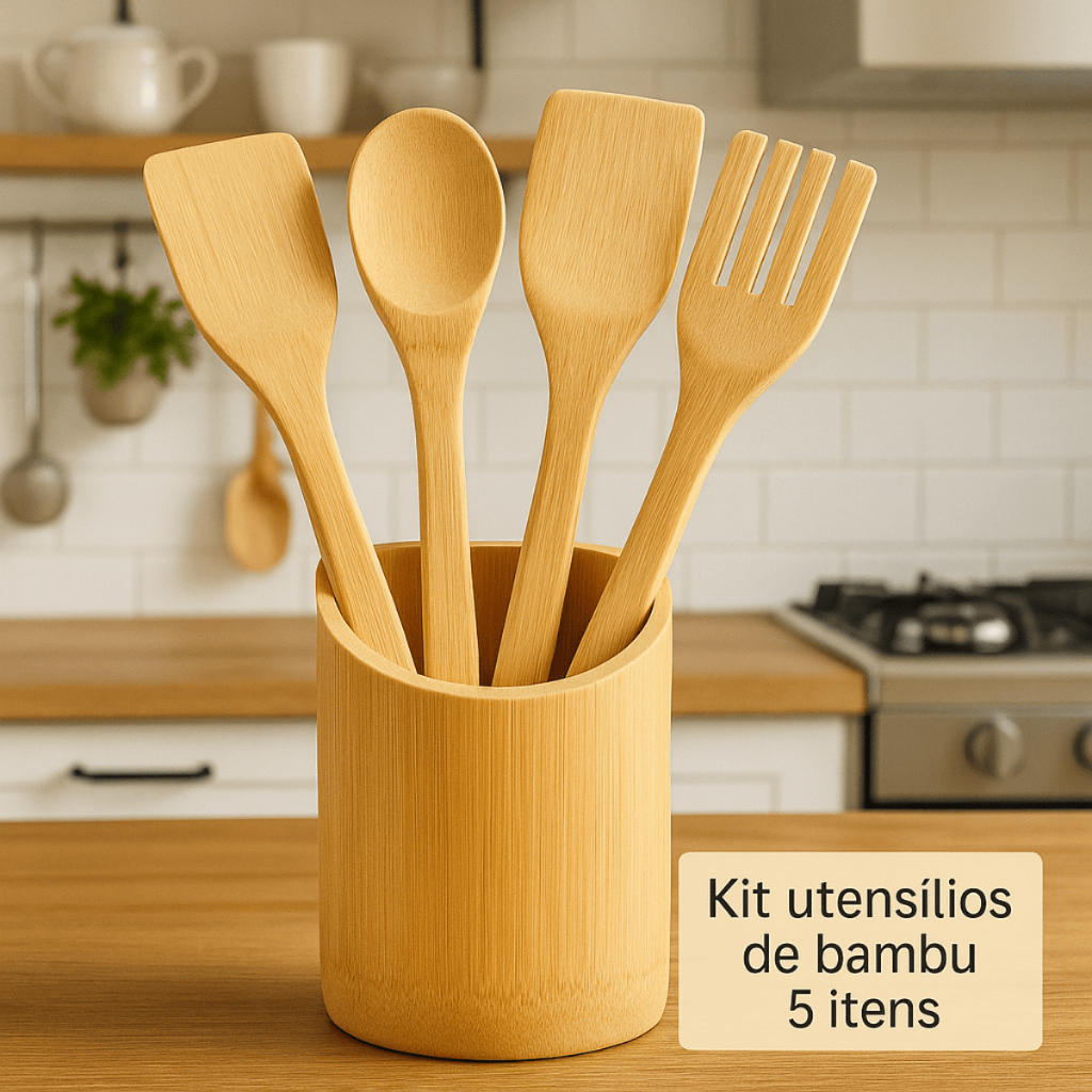 Kit Utensílios de BAMBU cozinha colher de pau, espatula com base
