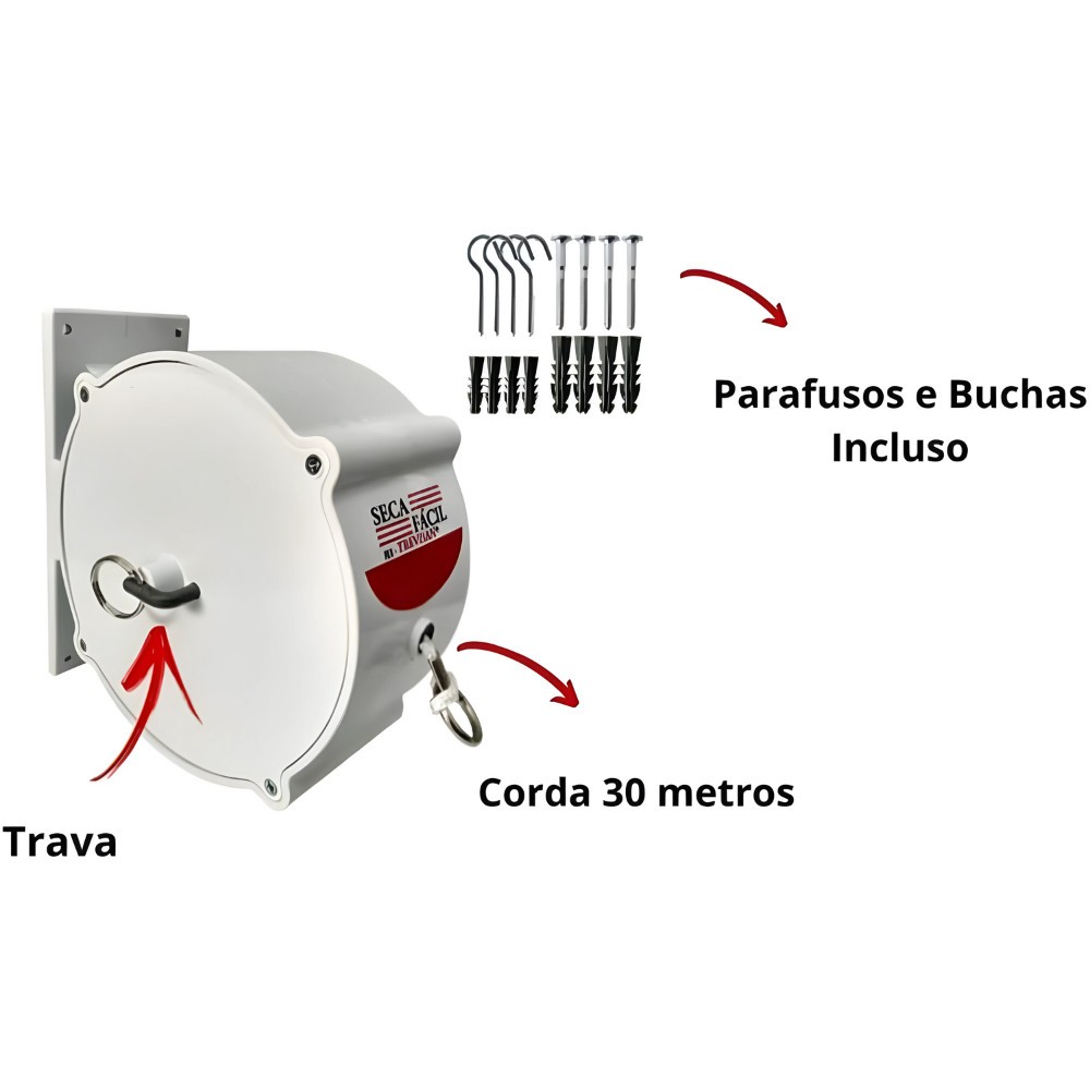 Varal Trevisan Retrátil Recolhível De Parede Seca Fácil 30m