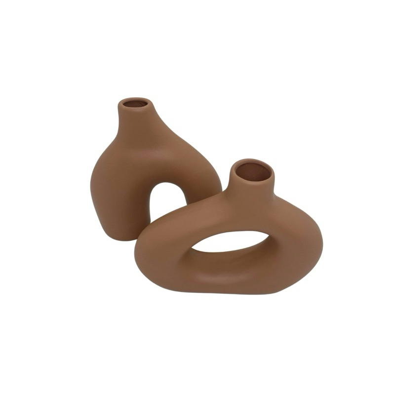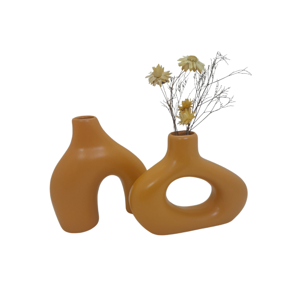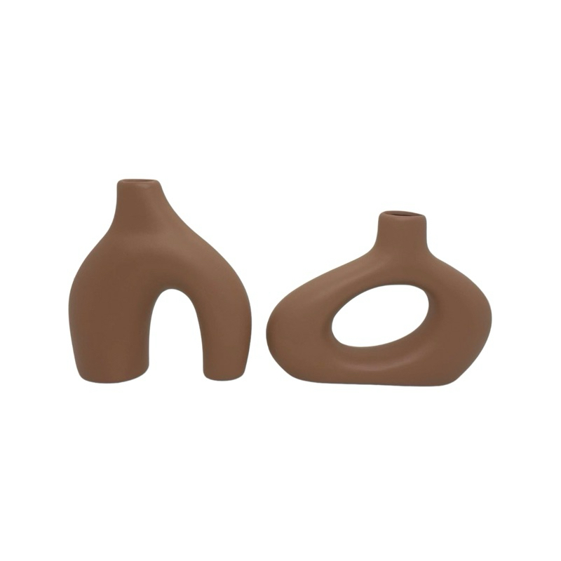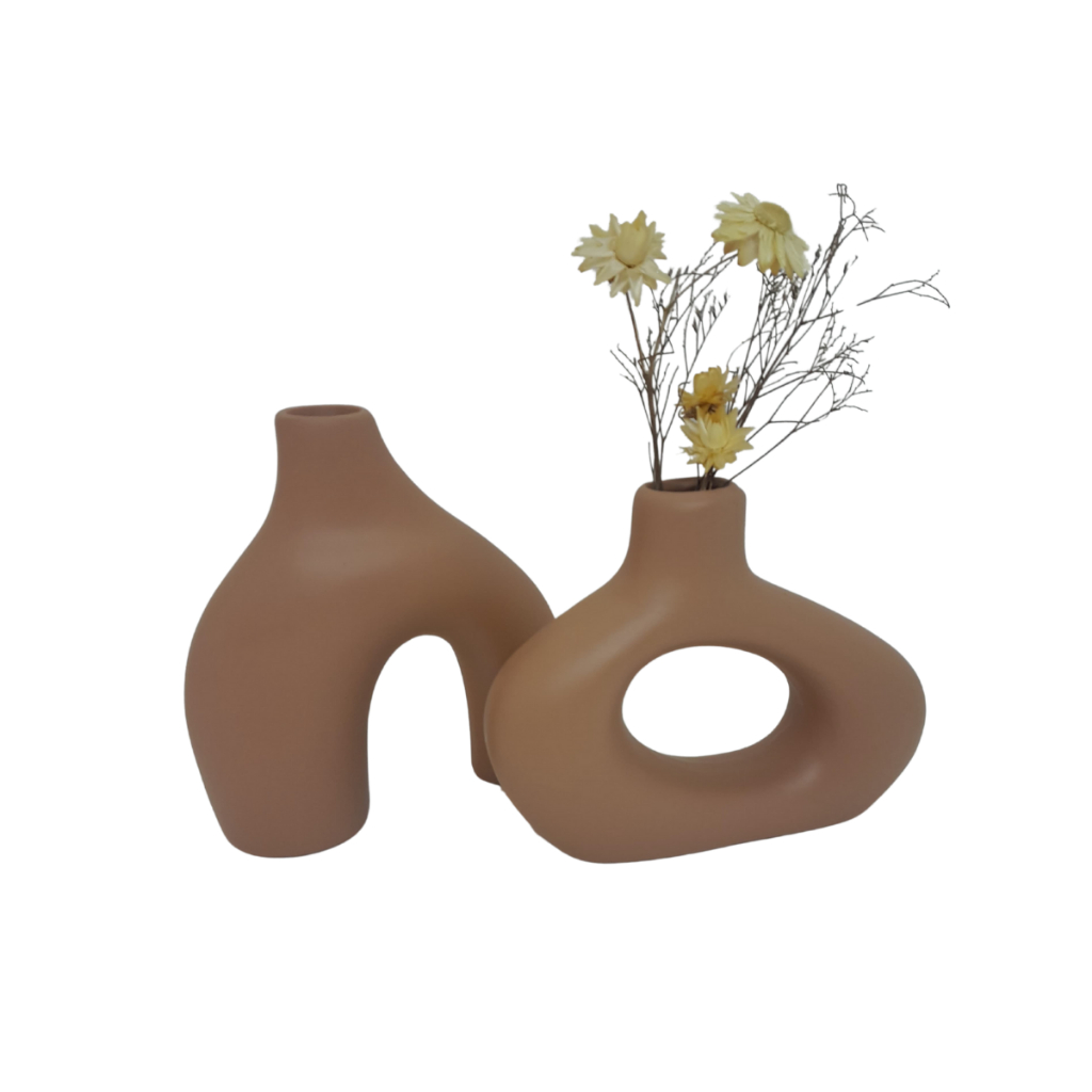 Dupla de Vaso De Cerâmica Orgânico Decorativo Sala Casa Minimalista