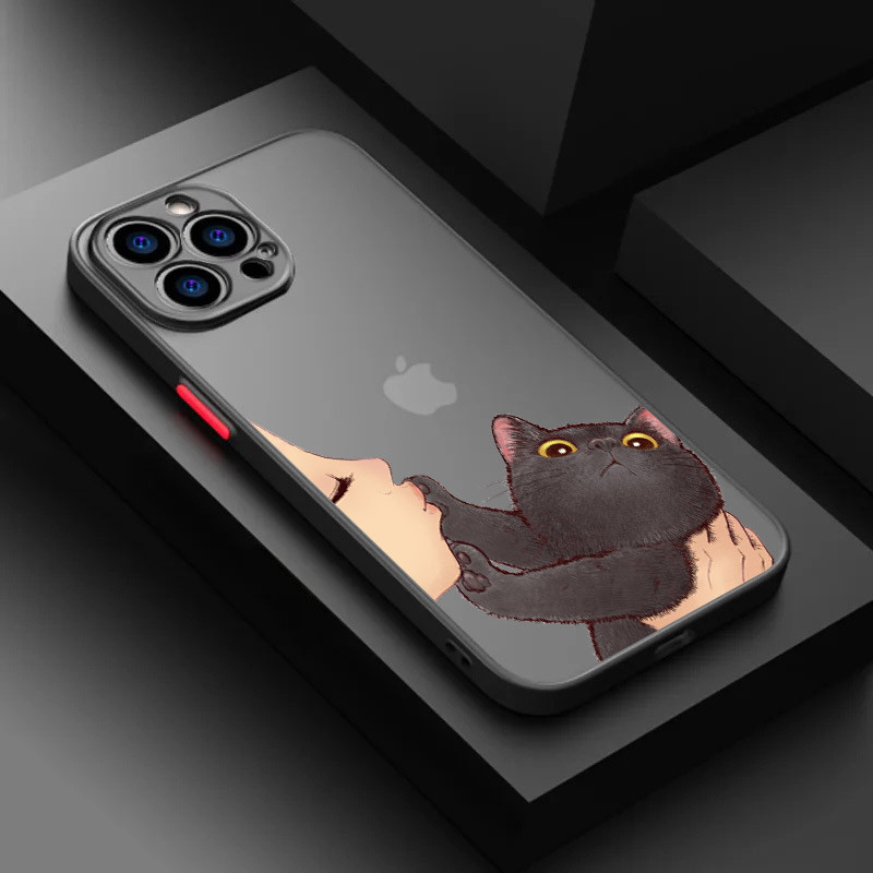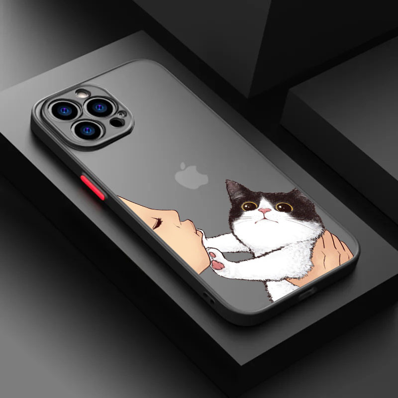 Bonito Adorável Gato Beijo Rosto Caso De Telefone Para iphone 16 Pro 15 11 14 Plus Max 12 13 Mini XS 7 8 SE2020 Silicone