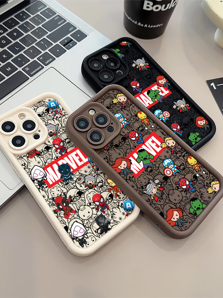 Capa Fofa De Desenho Animado Marvel The Avengers Para iphone 16E 16 15 11 14 Pro Max Plus 12 13 Mini Telefone De Silicon