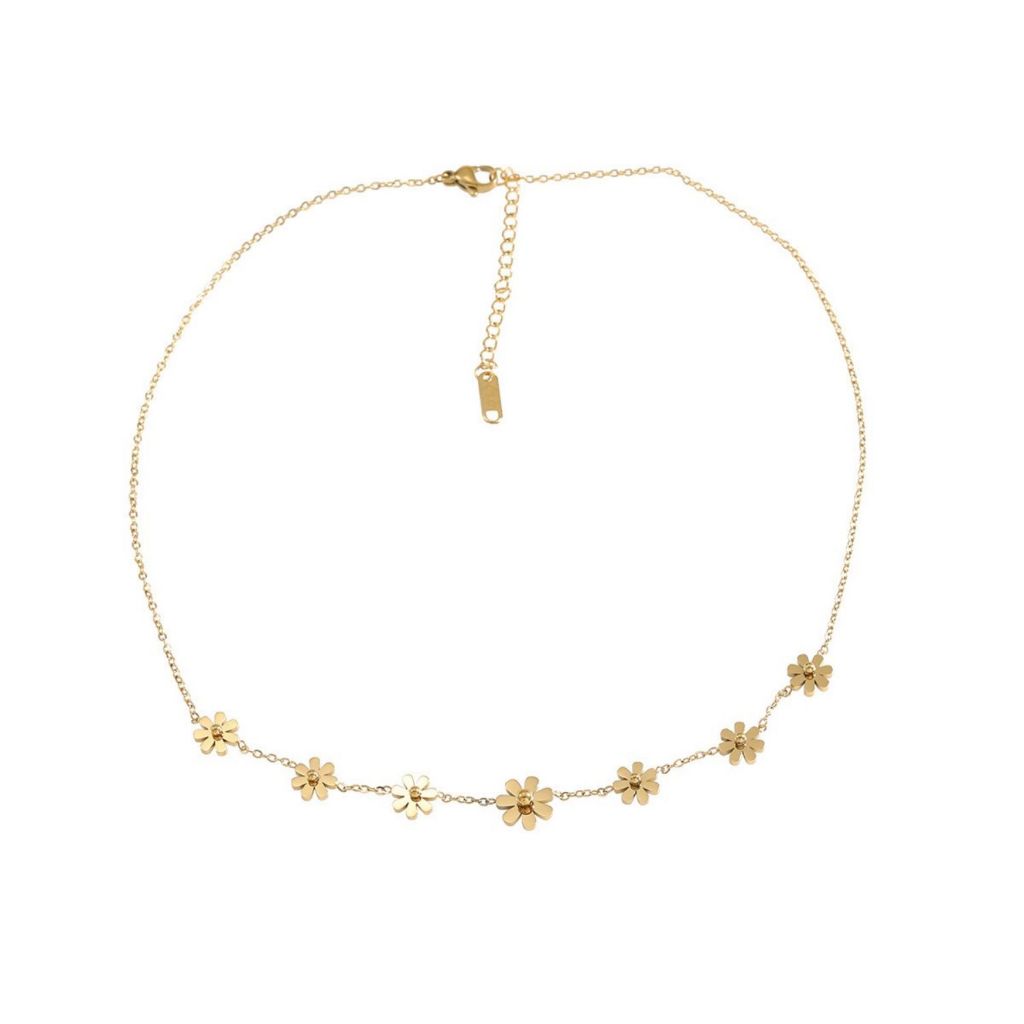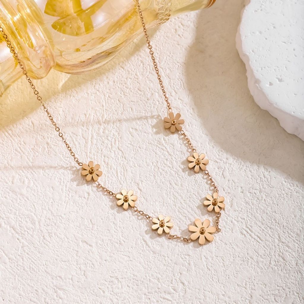 Colar feminino de aço titânio 18K com design de nicho, girassol e margarida, corrente de clavícula de verão, maré não de