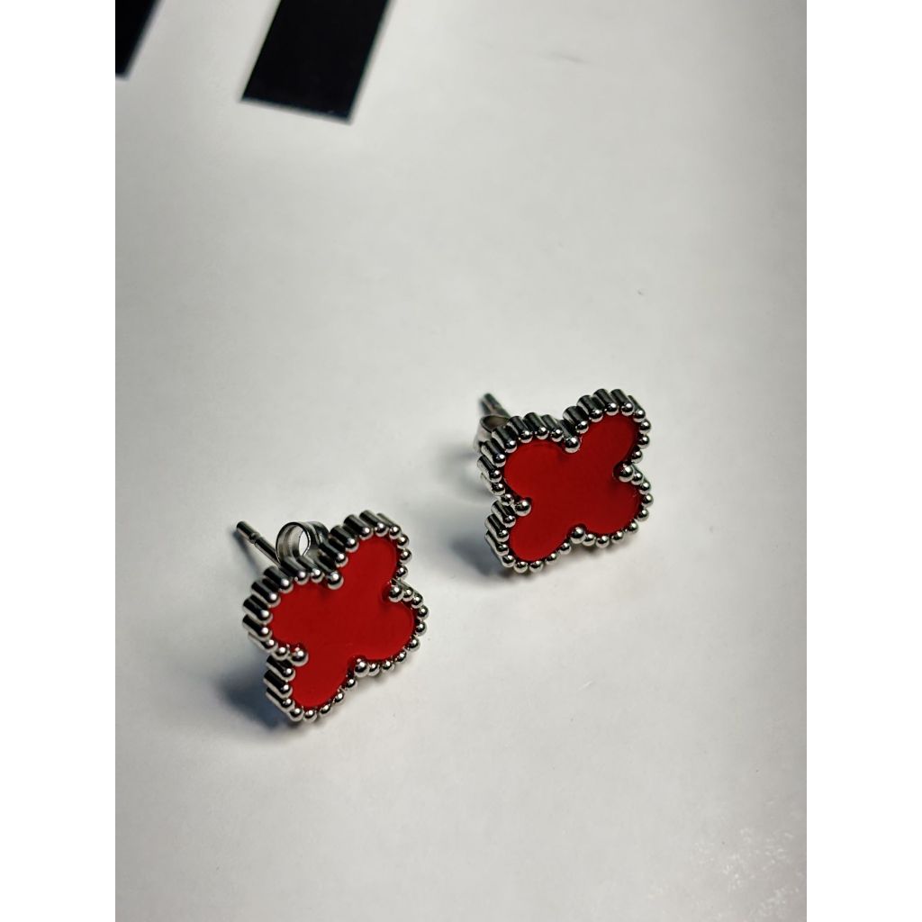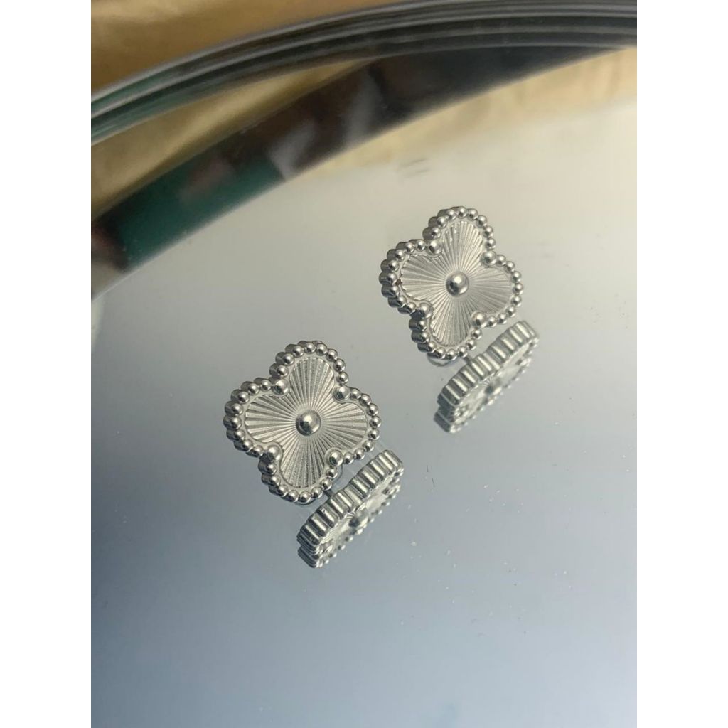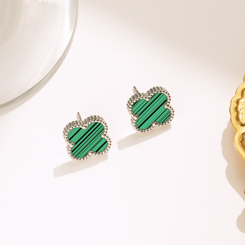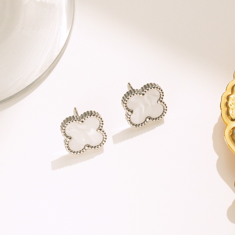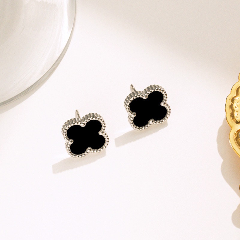 Brincos de aço titânio prata trevo de quatro folhas galvanizados à prova d'água e sem desbotamento