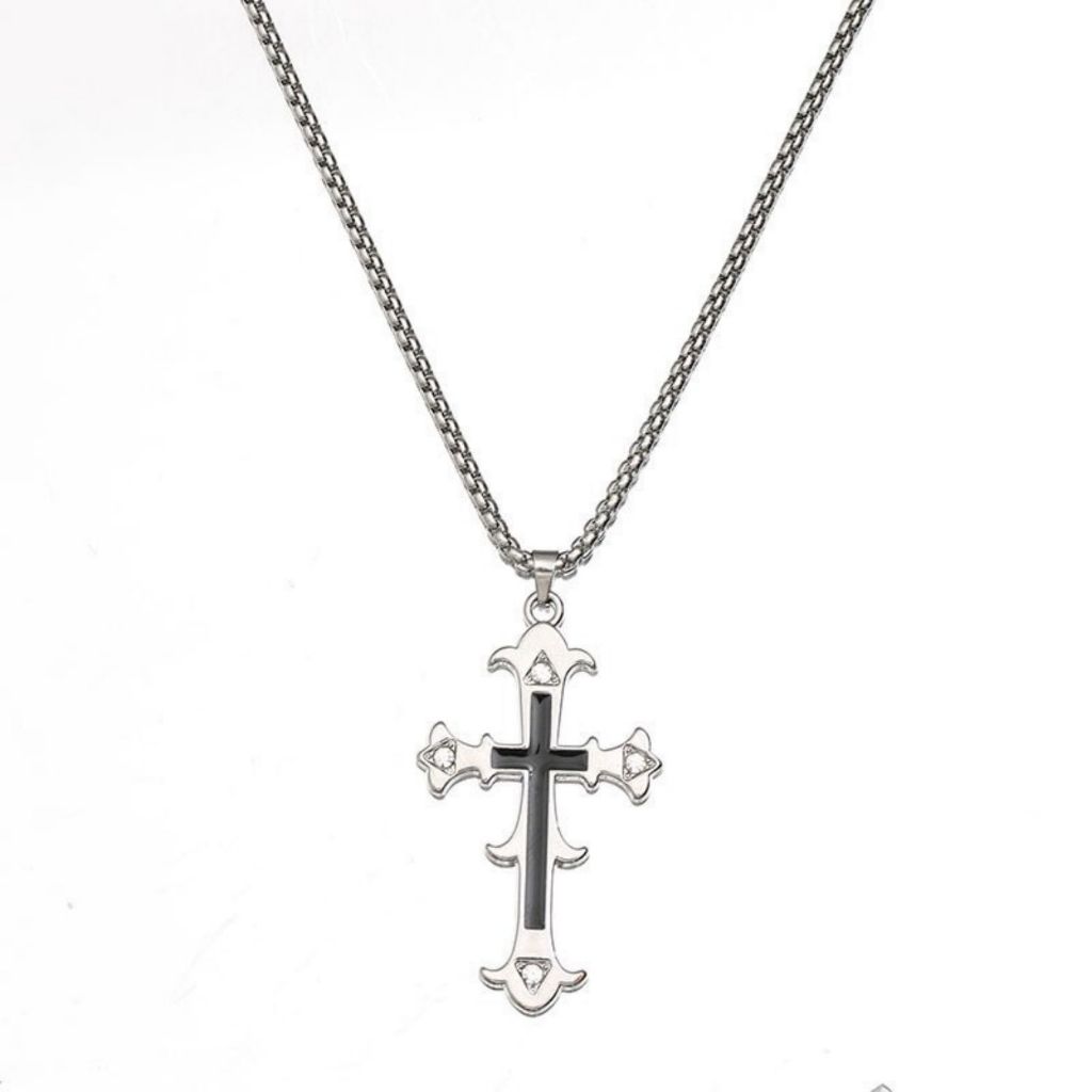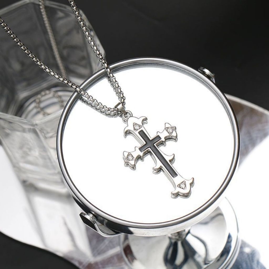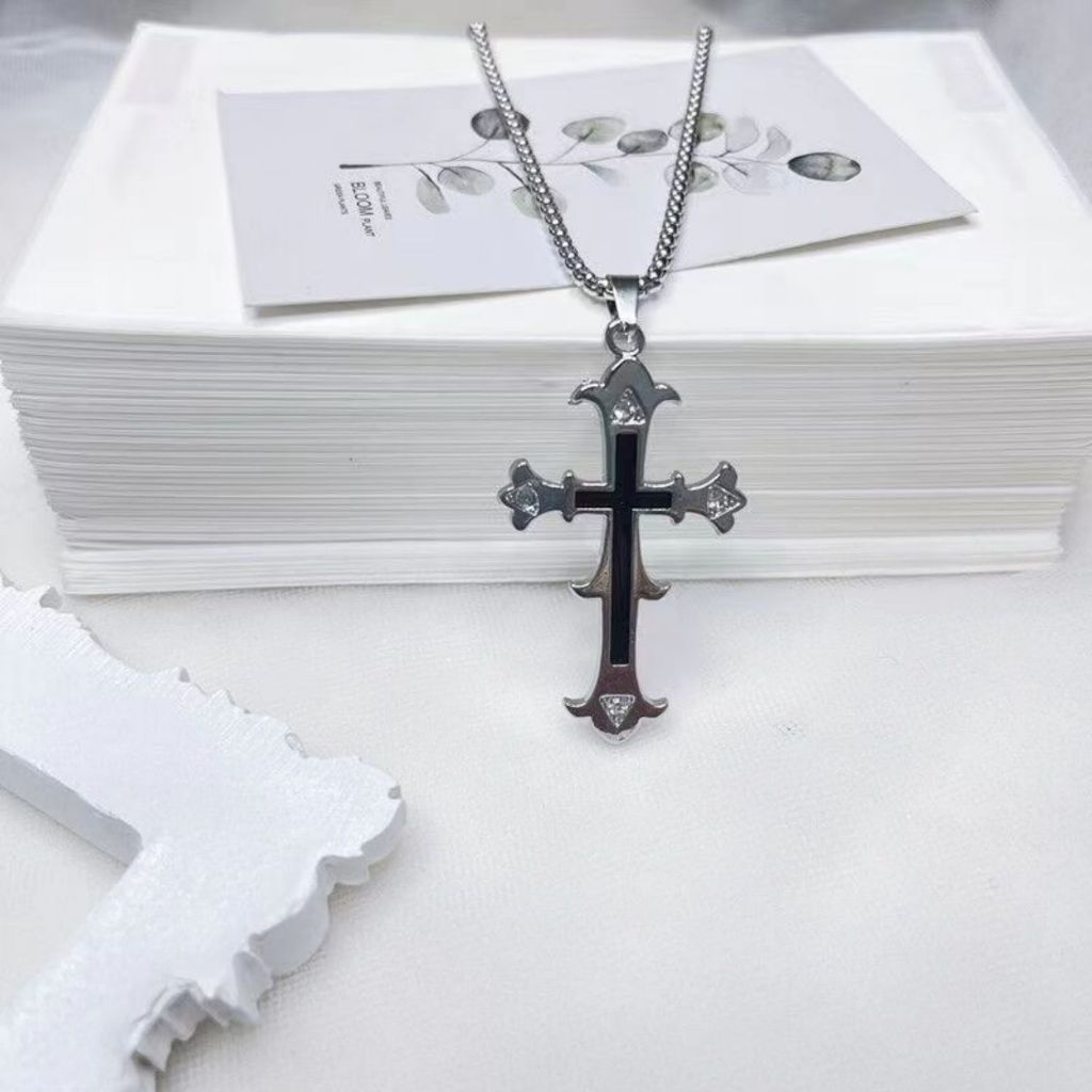 Europeu e americano titânio aço corvo coração diamante colar cruz retro não-desbotamento versátil para homem e mulher