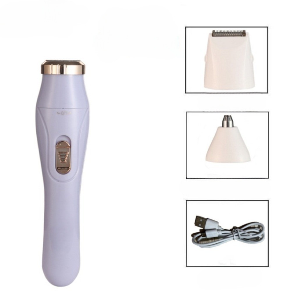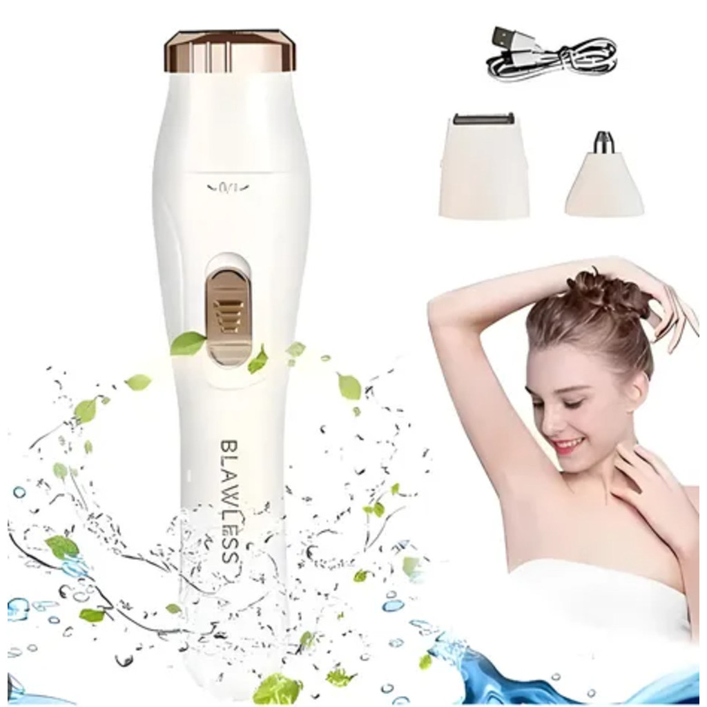 Depiladora Feminina Elétrica 3 em 1 Portátil Recarregável USB à Prova d’Água para Rosto e Corpo