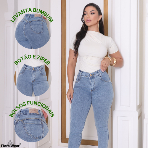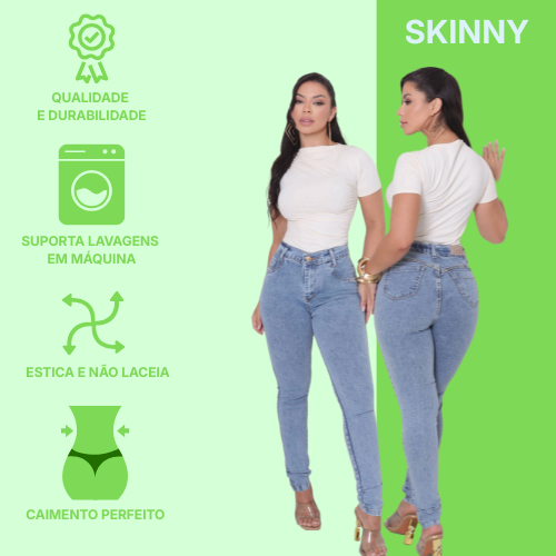 Calça Skinny Feminina Jeans Com Elastano Cintura Alta Levanta Bumbum Promoção Dia a Dia