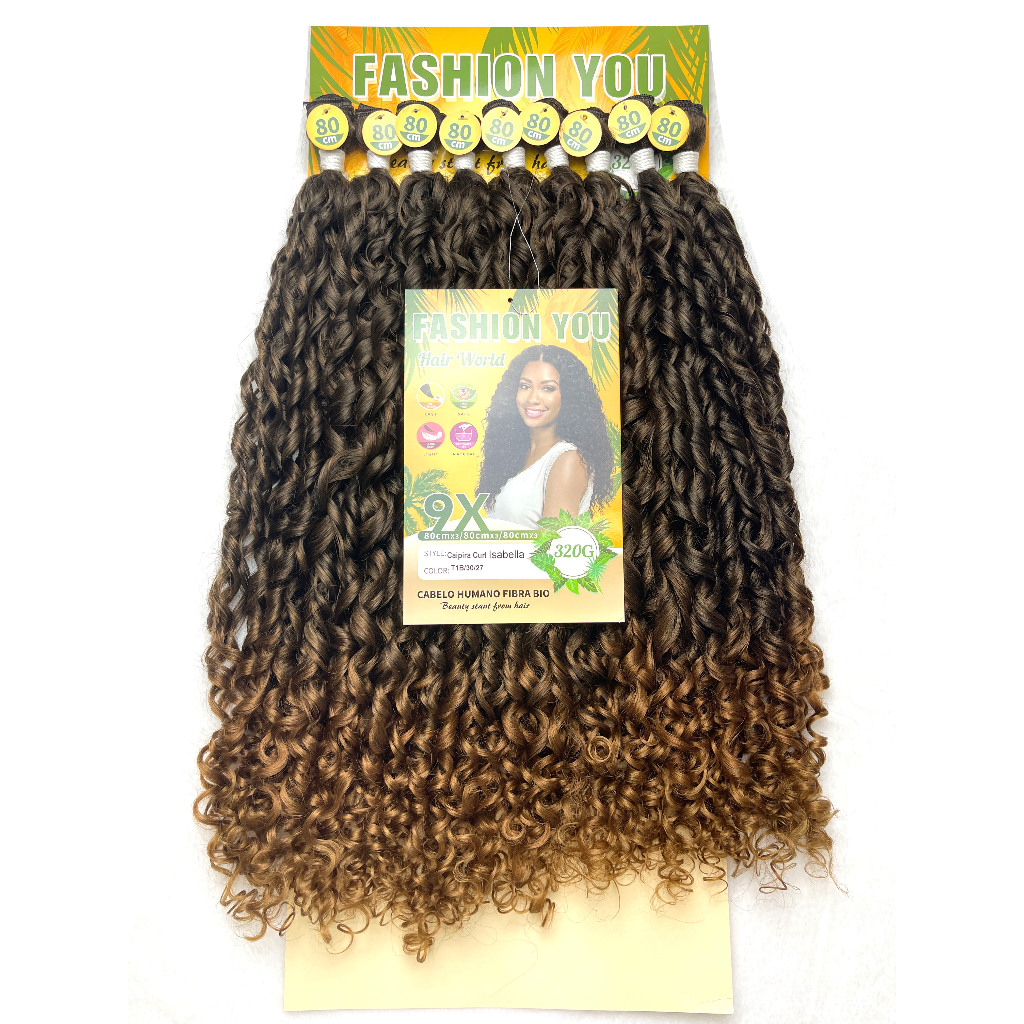 Cabelo Cacheado Bio Fibra Orgânico Similar Humano 320g 80cm sem brilho Fashion You Isabella Caipira