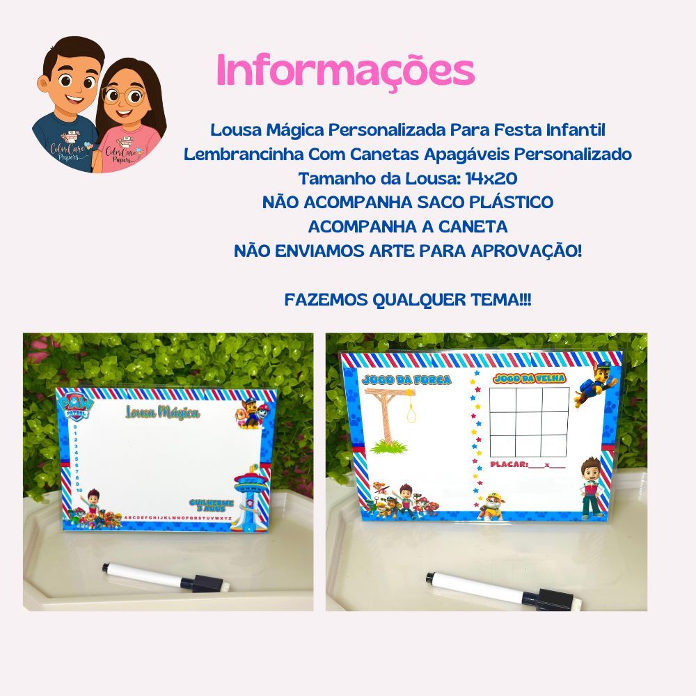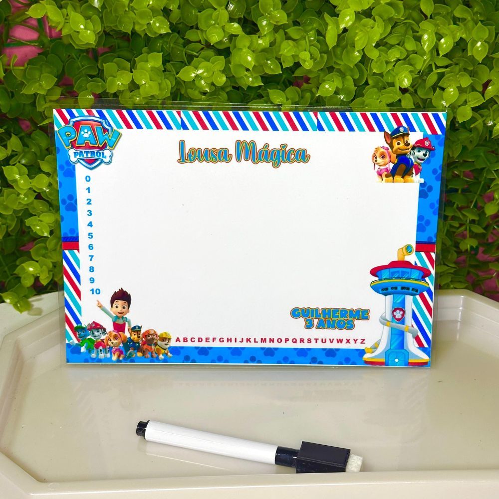 Lousa Mágica Personalizada Canetas Apagáveis Lembrancinha PATRULHA CANINA ou Qualquer Tema