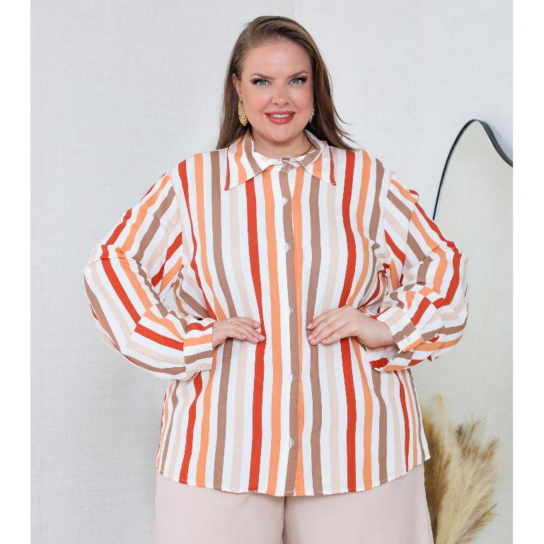 CAMISA SOCIAL FEMENINA ELEGANTE PLUS SIZE LISTRADO