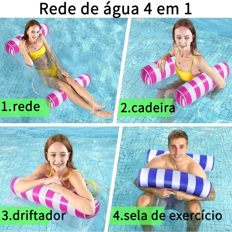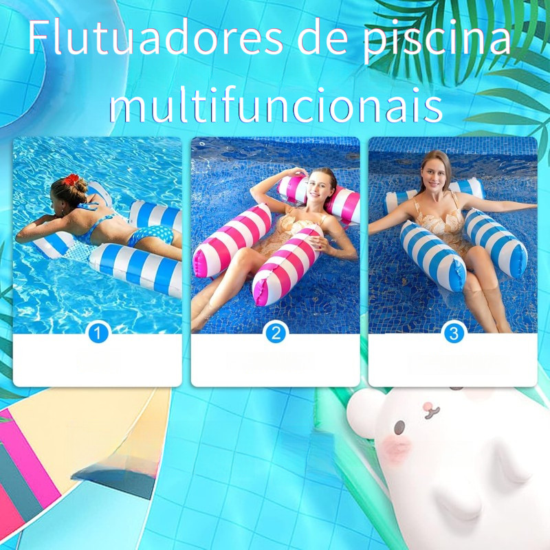 Bóia de Piscina Inflável com Rede Flutuante - Colchão de Água Reclinável e Confortável