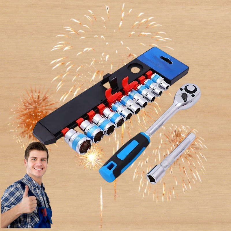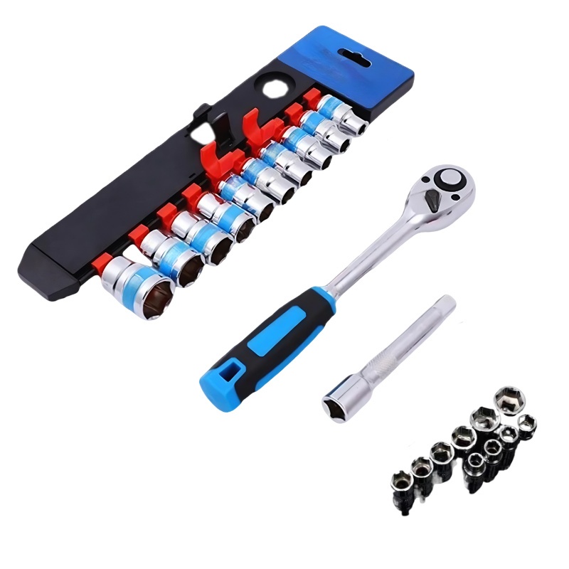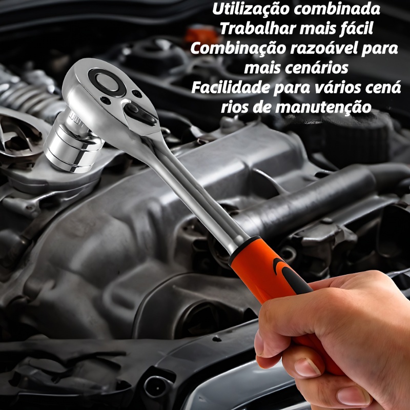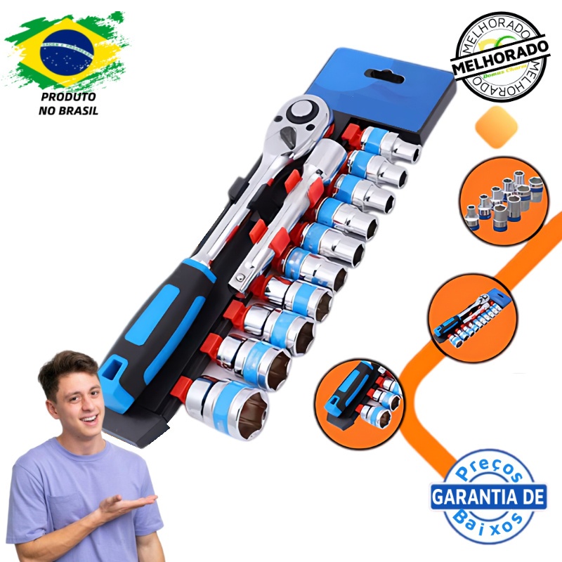 Jogo De Soquete Sextavado 1/2 Catraca 12 Peças 8 a 24mm com Extensão