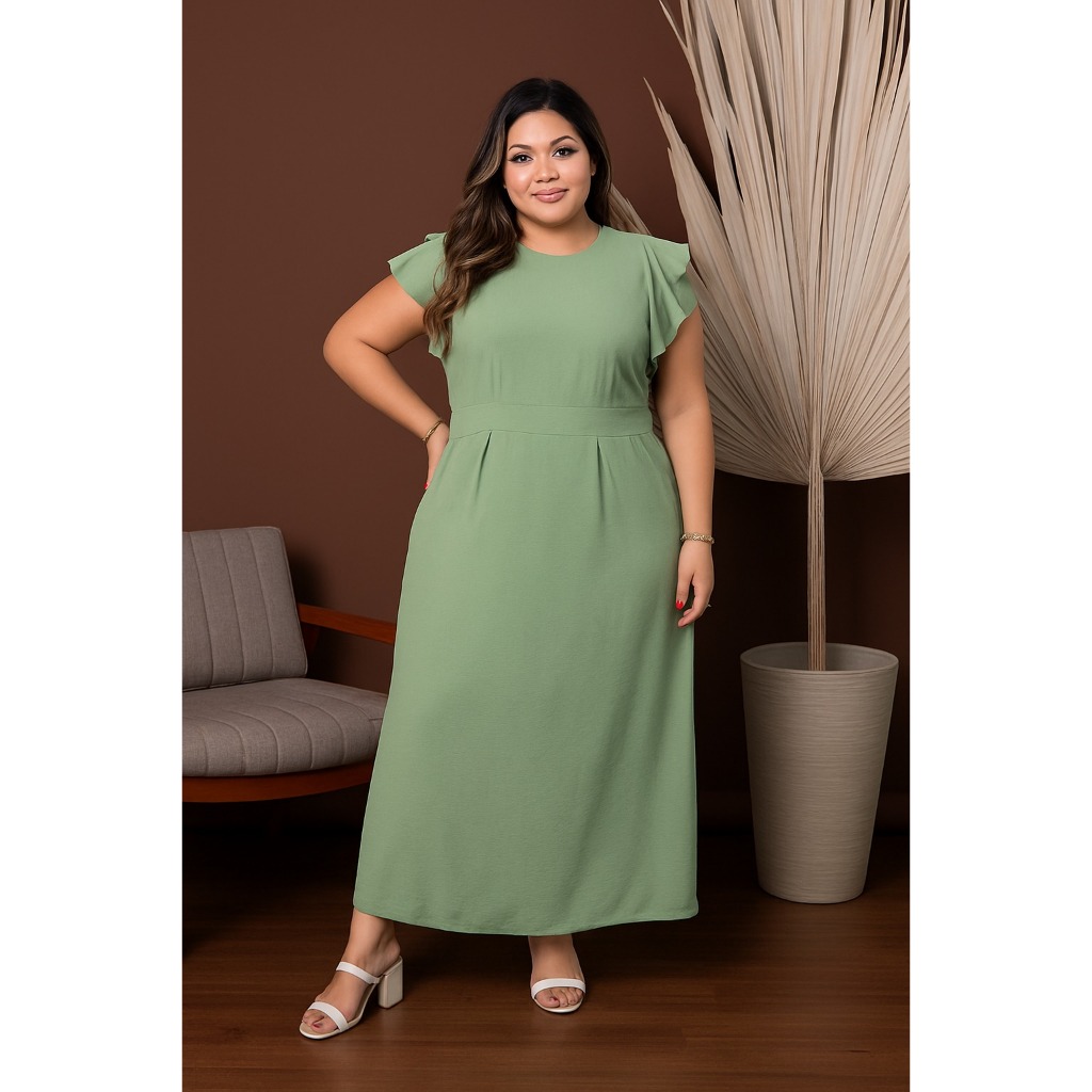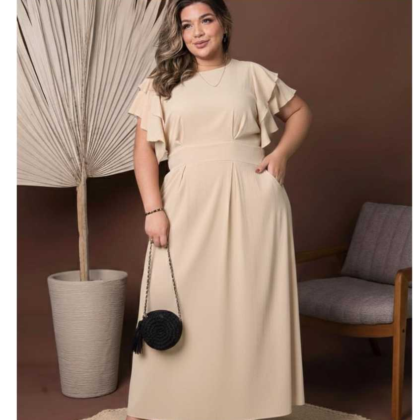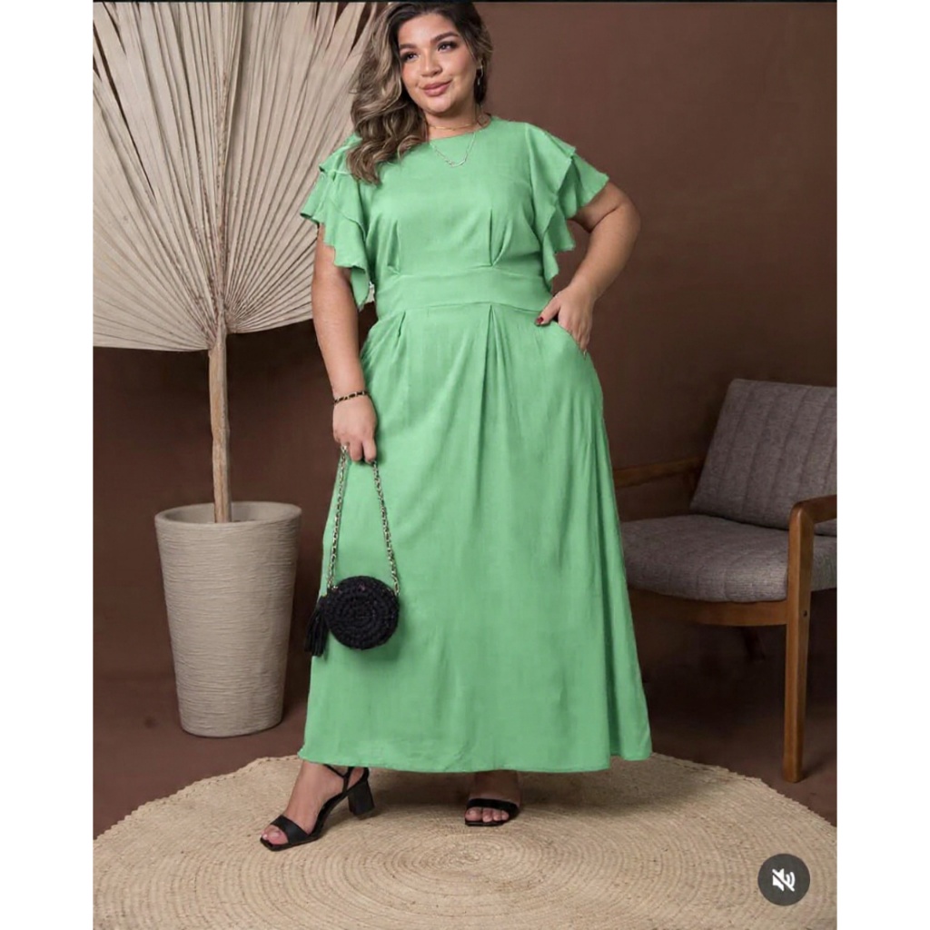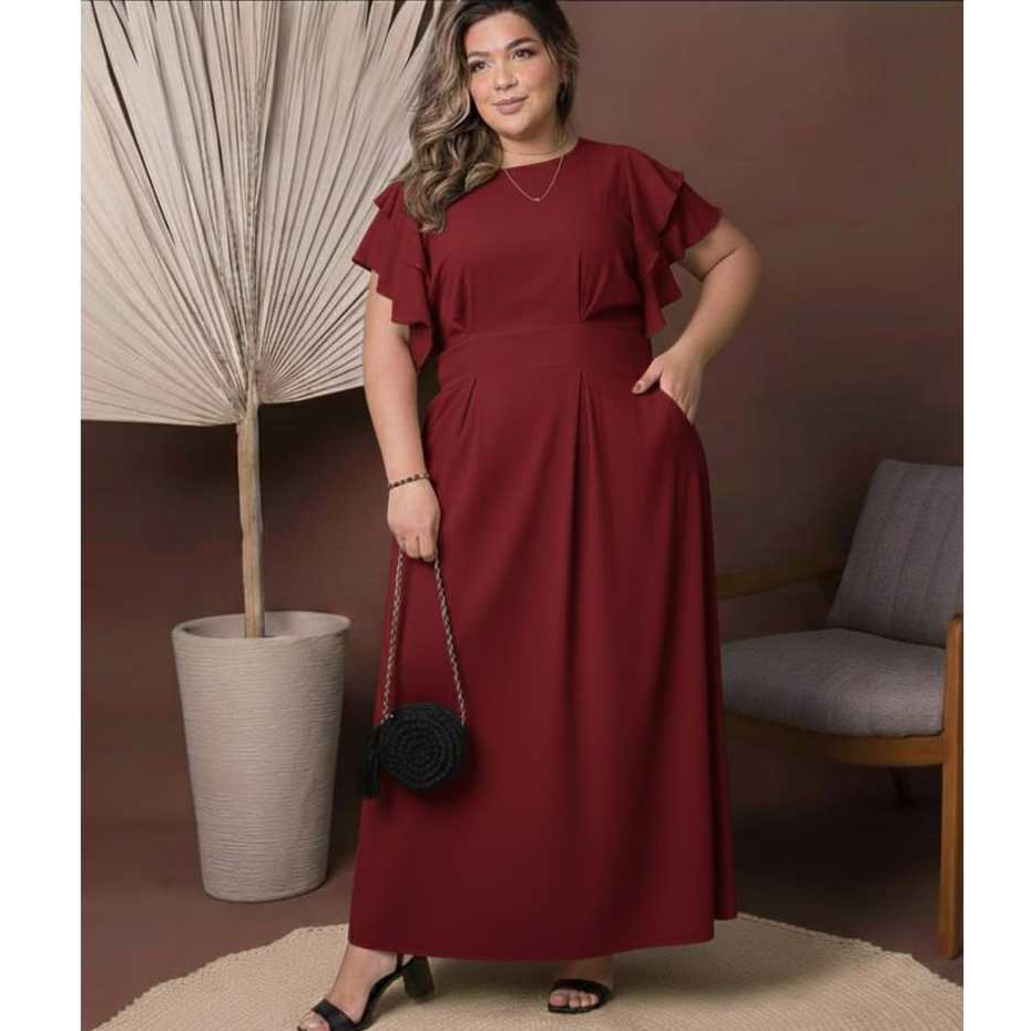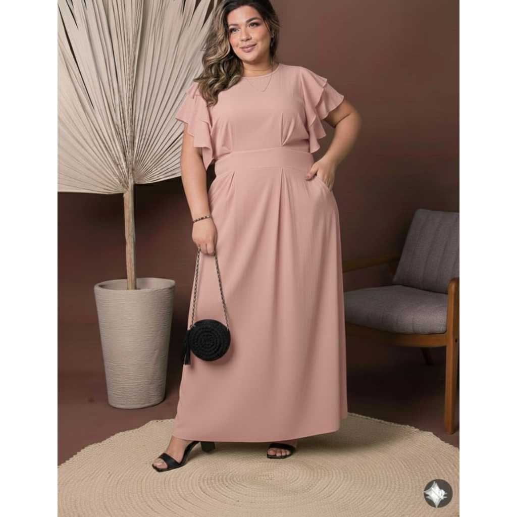 Vestido Plus Size Longo Moda Blogueira Moda Evangelica Manga Com Babado Confortável