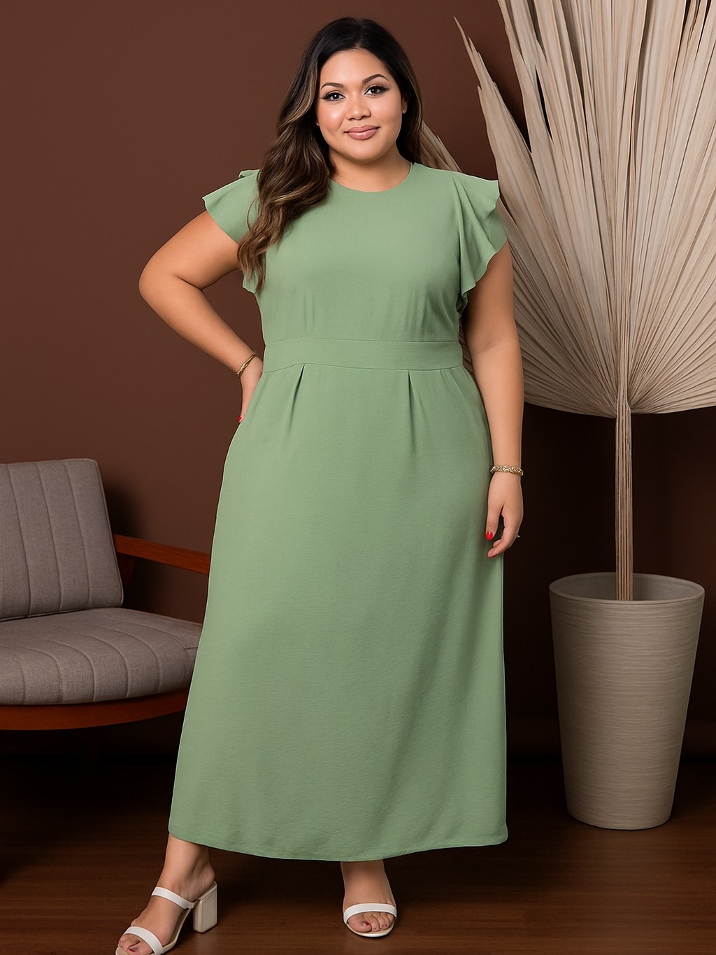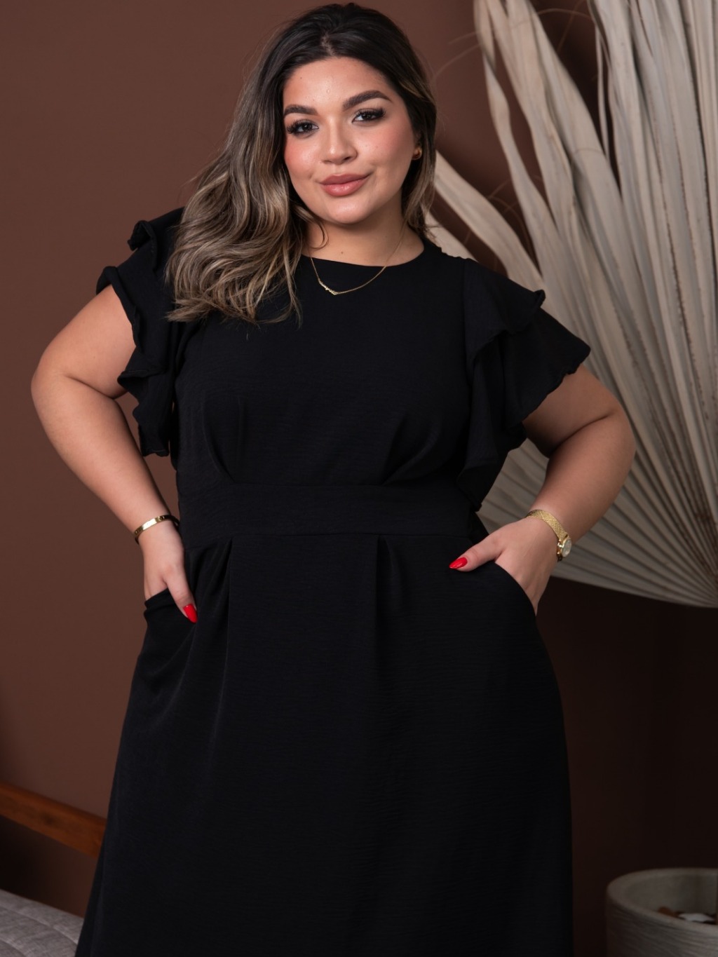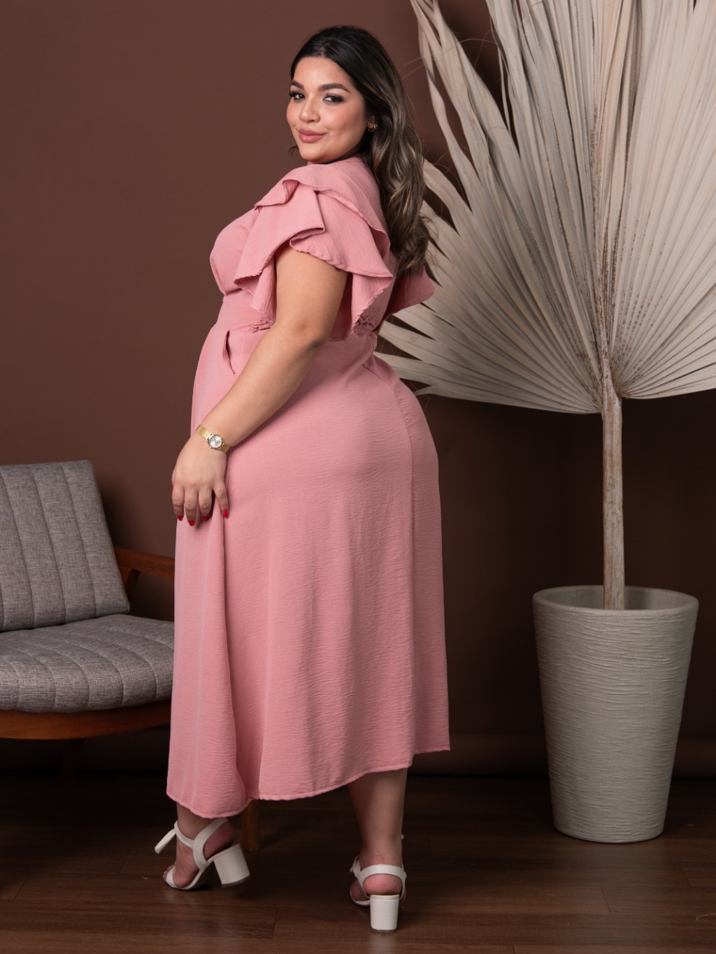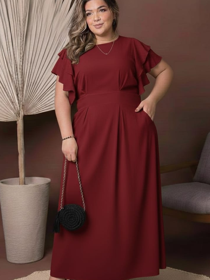 Vestido Plus Size Longo Moda Blogueira Moda Evangelica Manga Com Babado Confortável