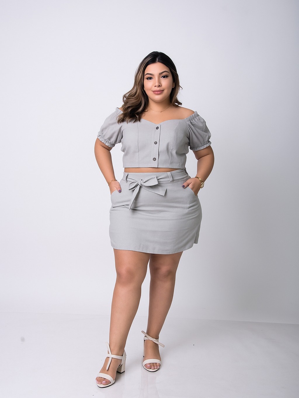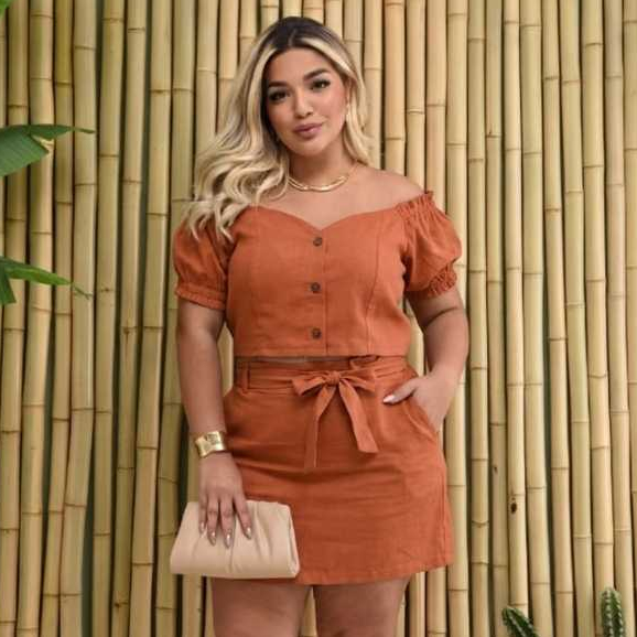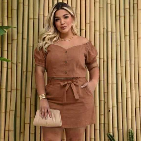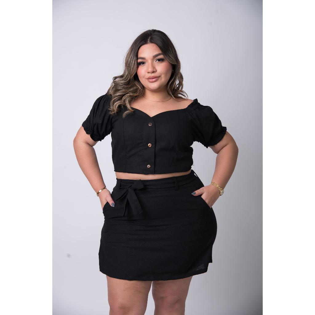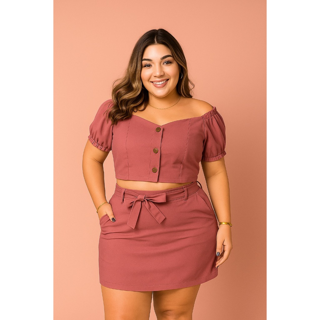 Conjunto Feminino Short Saia e Blusa Plus Size Moda Casual Dia a Dia Plus Confortável