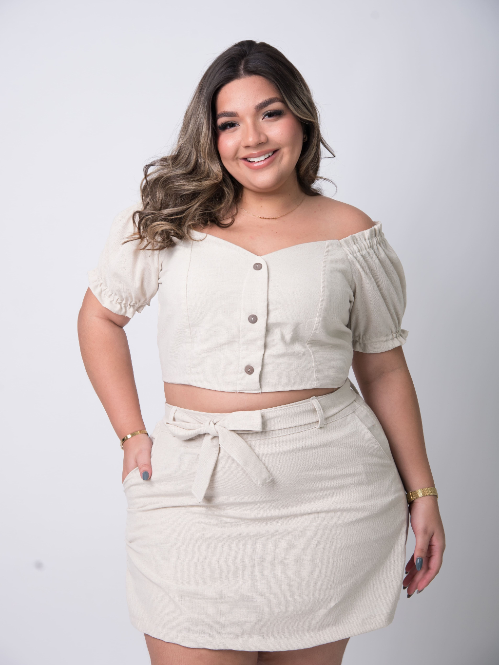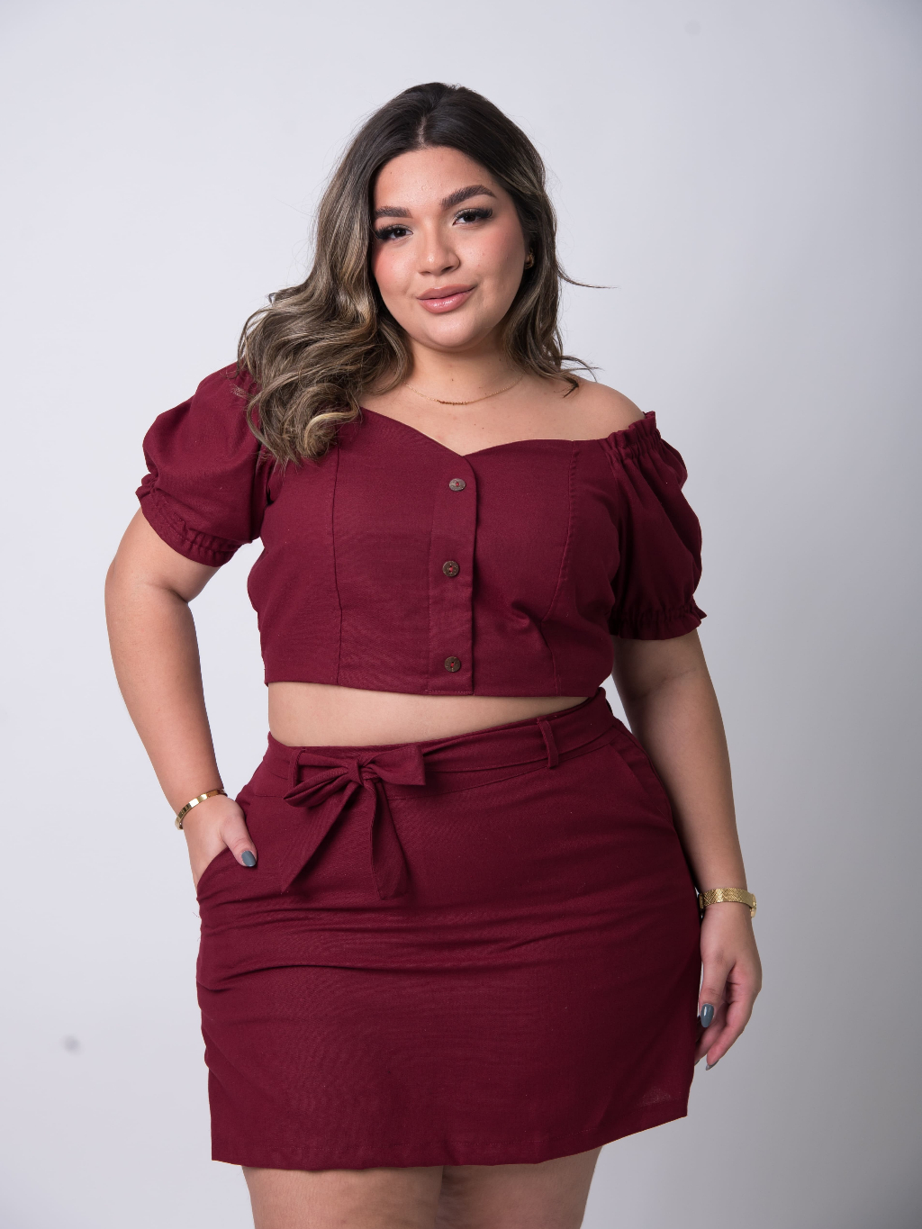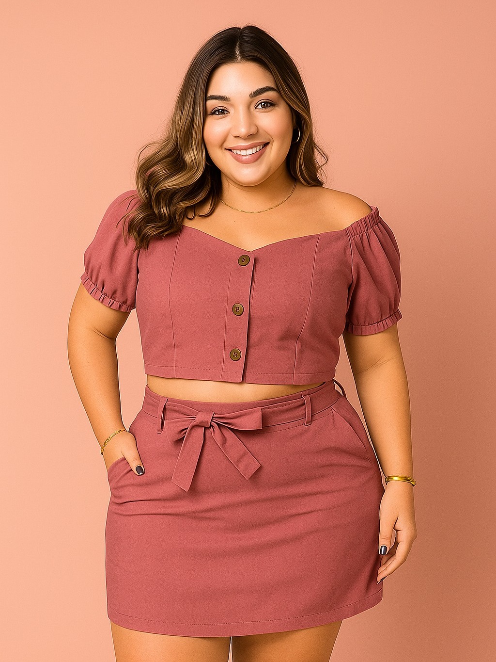 Conjunto Feminino Short Saia e Blusa Plus Size Moda Casual Dia a Dia Plus Confortável