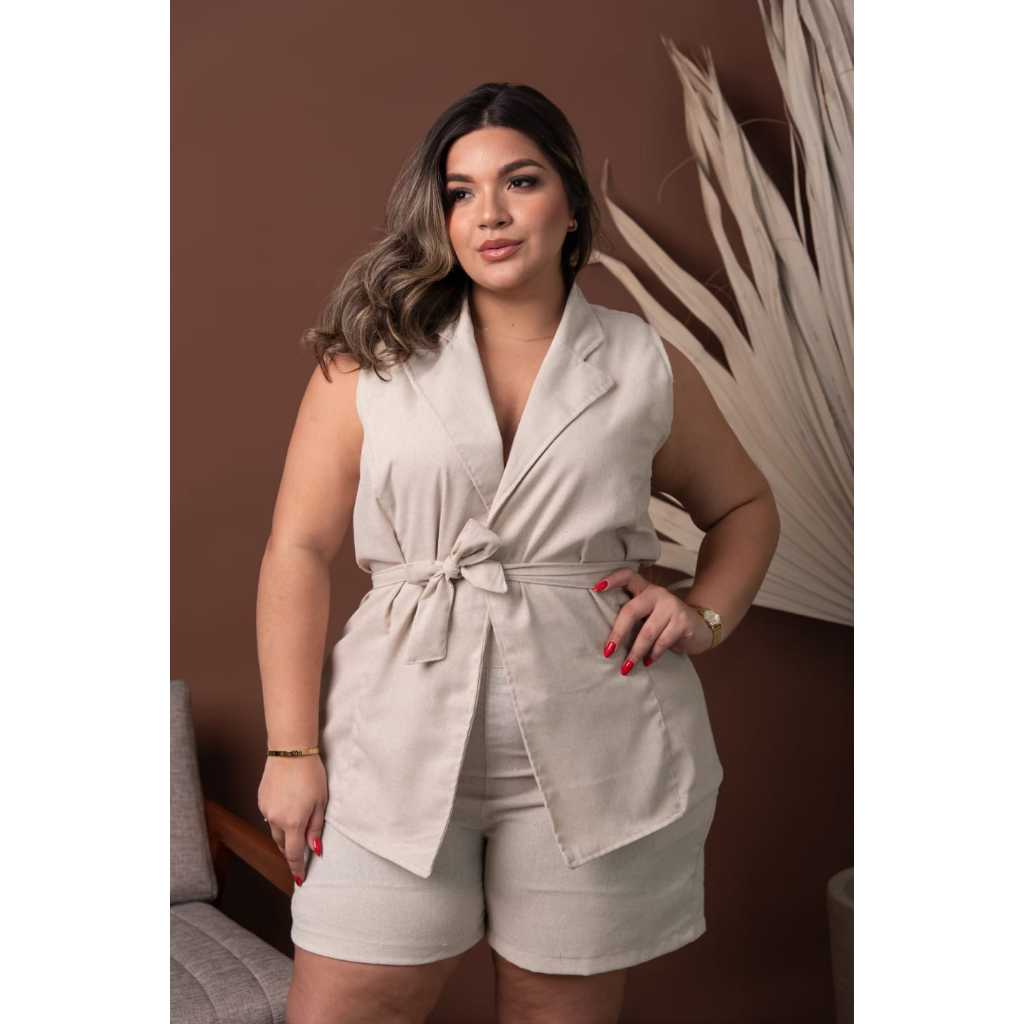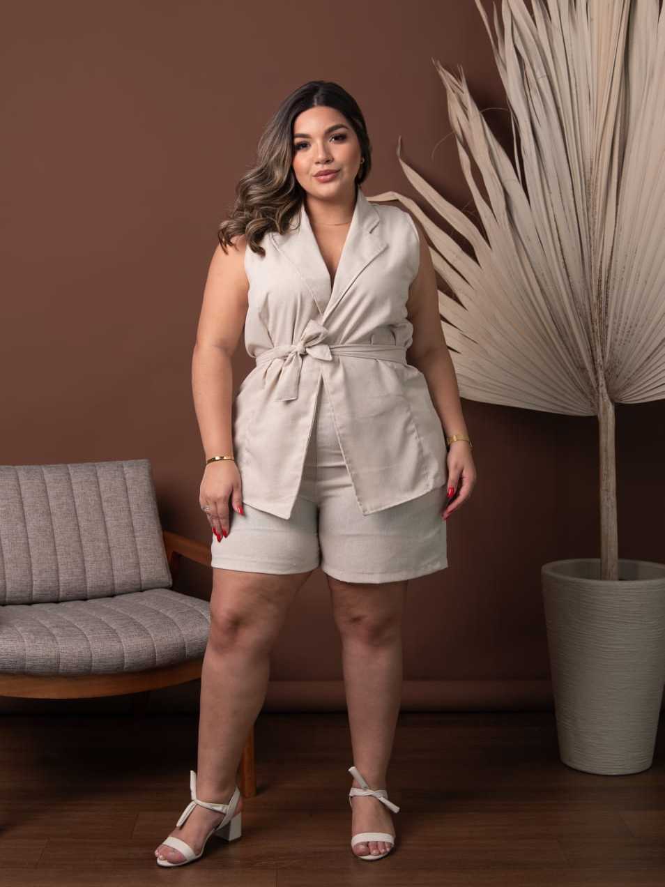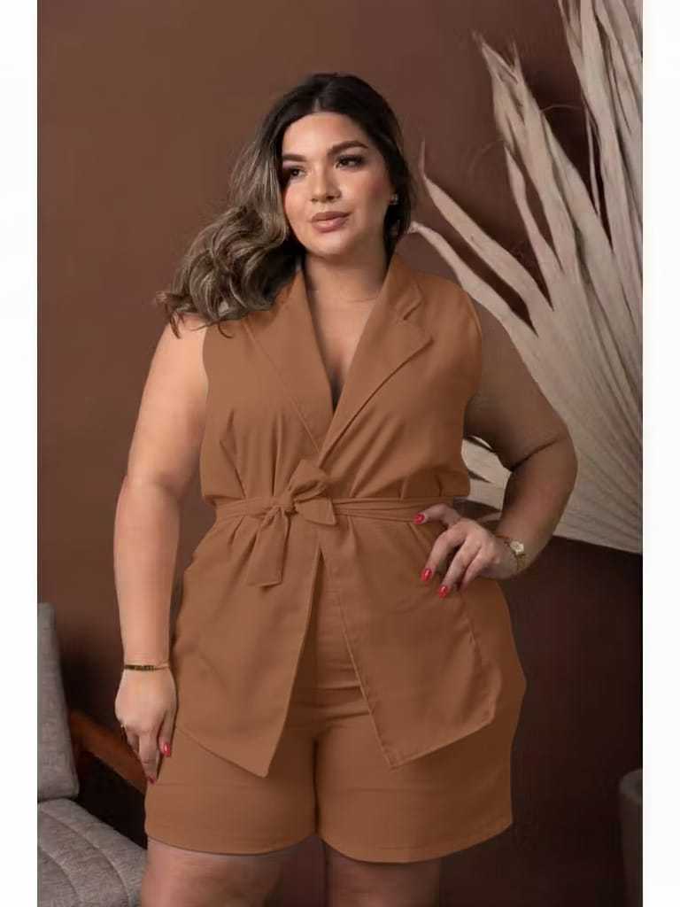 Conjunto Short e Blusa Plus Size Colete Moda Plus Conforto Estilo Elegância Dia a Dia