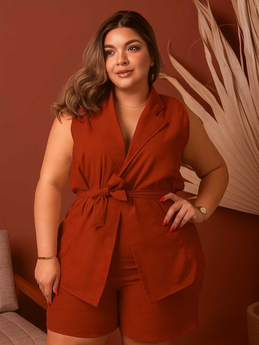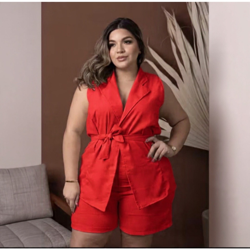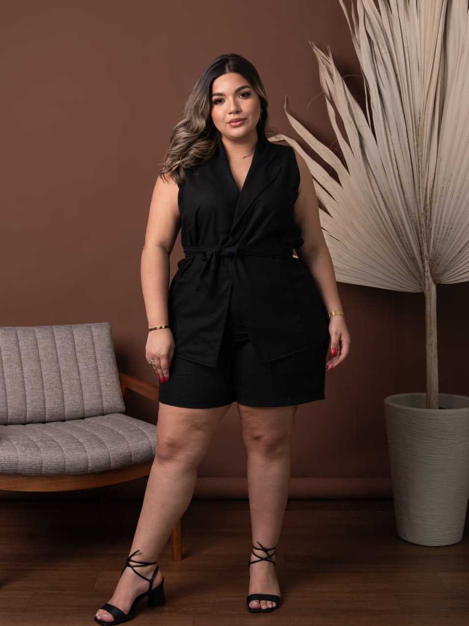 Conjunto Short e Blusa Plus Size Colete Moda Plus Conforto Estilo Elegância Dia a Dia