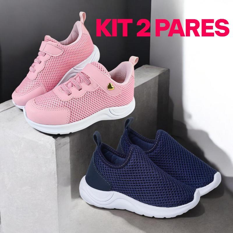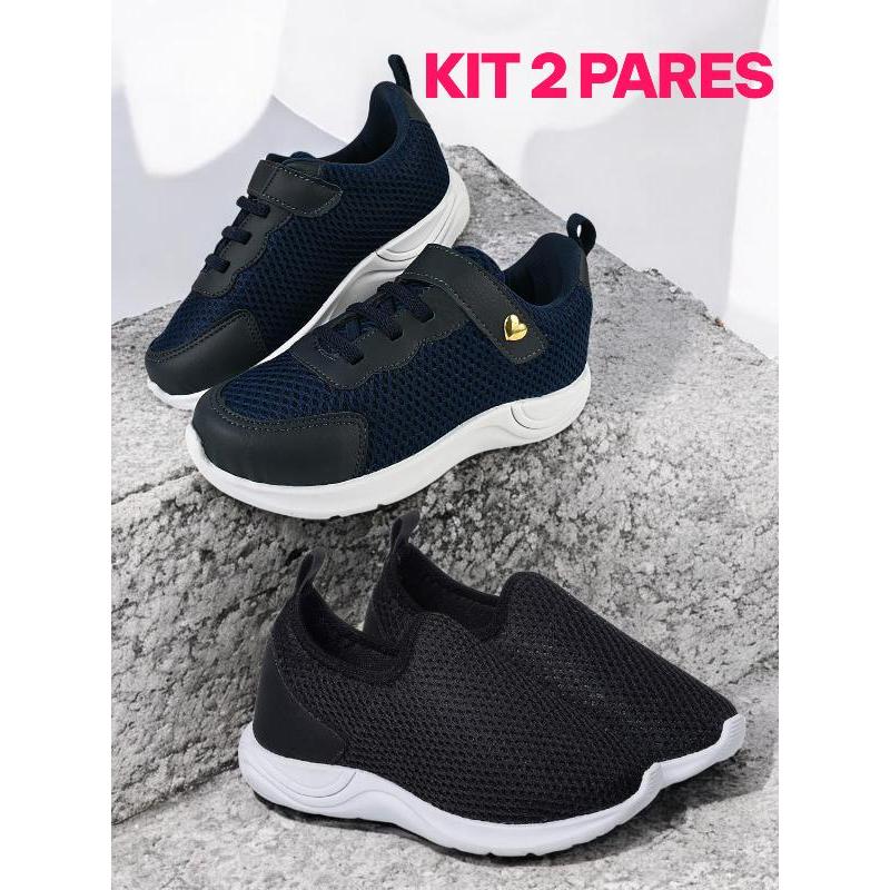 Kit 2 ParesTenis Calce Facil Feminino Infantil Menina Escolar Leve Confortavel Antiderrapante
