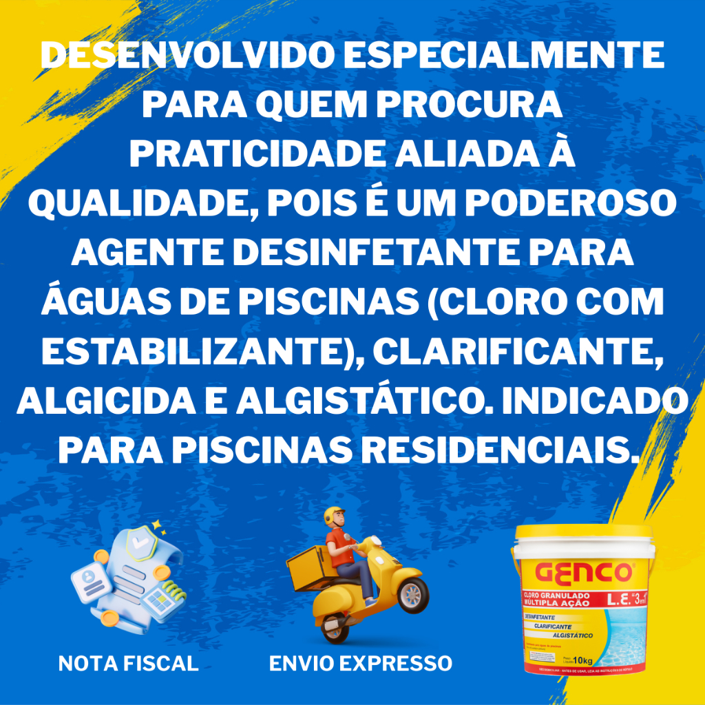 Cloro Granulado Múltipla Ação 3 em 1 10 kg – Genco Maximo 1 Unidade Por Compra
