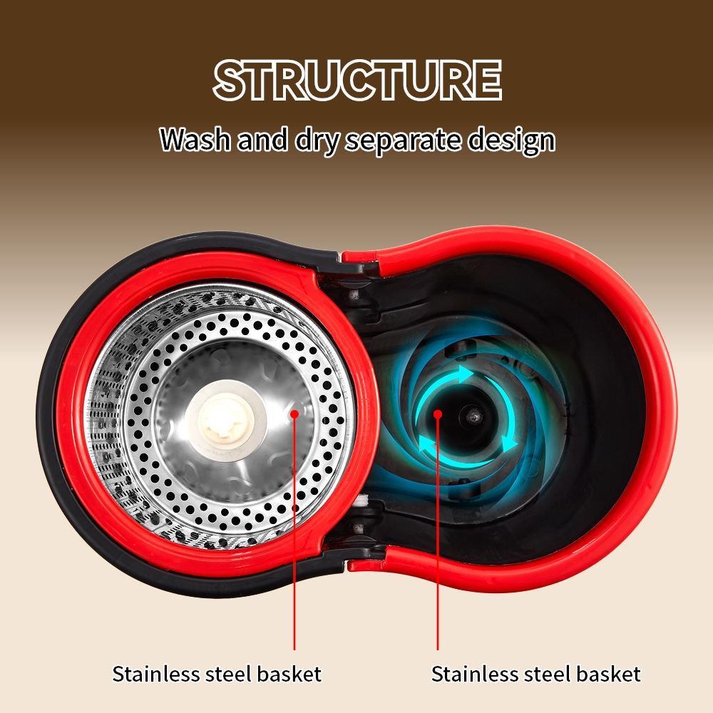 Balde Mop Turbo Pedal Giratório 360 com Centrífuga Cesto Inox 2 Áreas + Microfibra