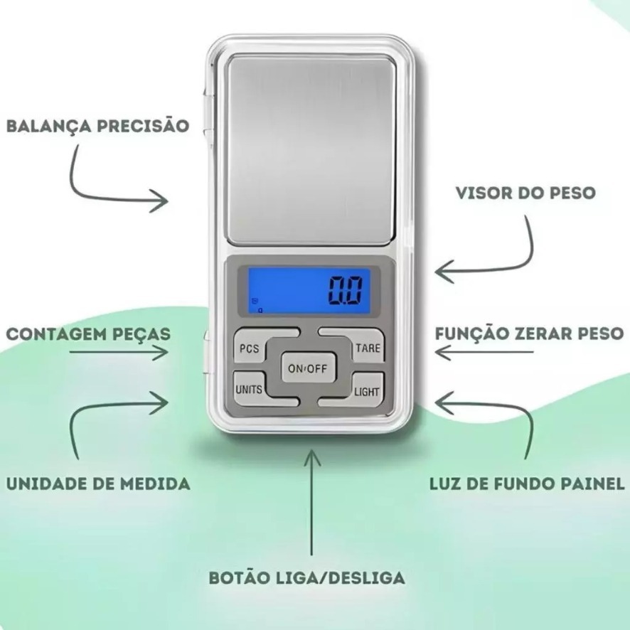 Mini Balança Digital De Bolso Alta Precisão Portátil 0,01g Até 500g Digital LCD Bandeja Cozinha