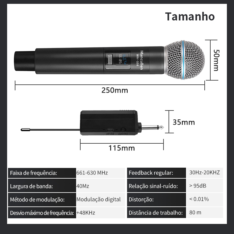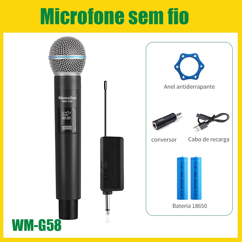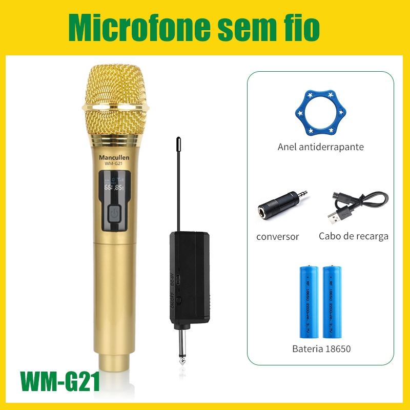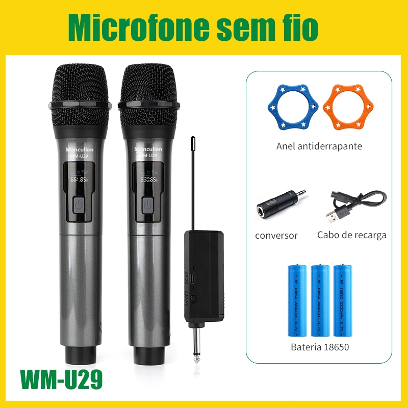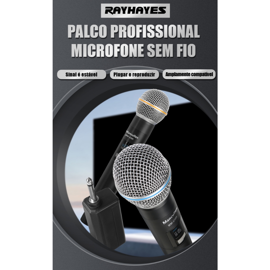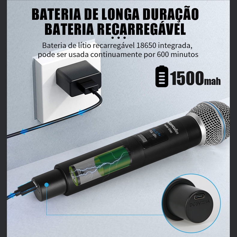 Mancullen Microfone sem fio profissional UHF Microfone dinâmico portátil recarregável para karaokê