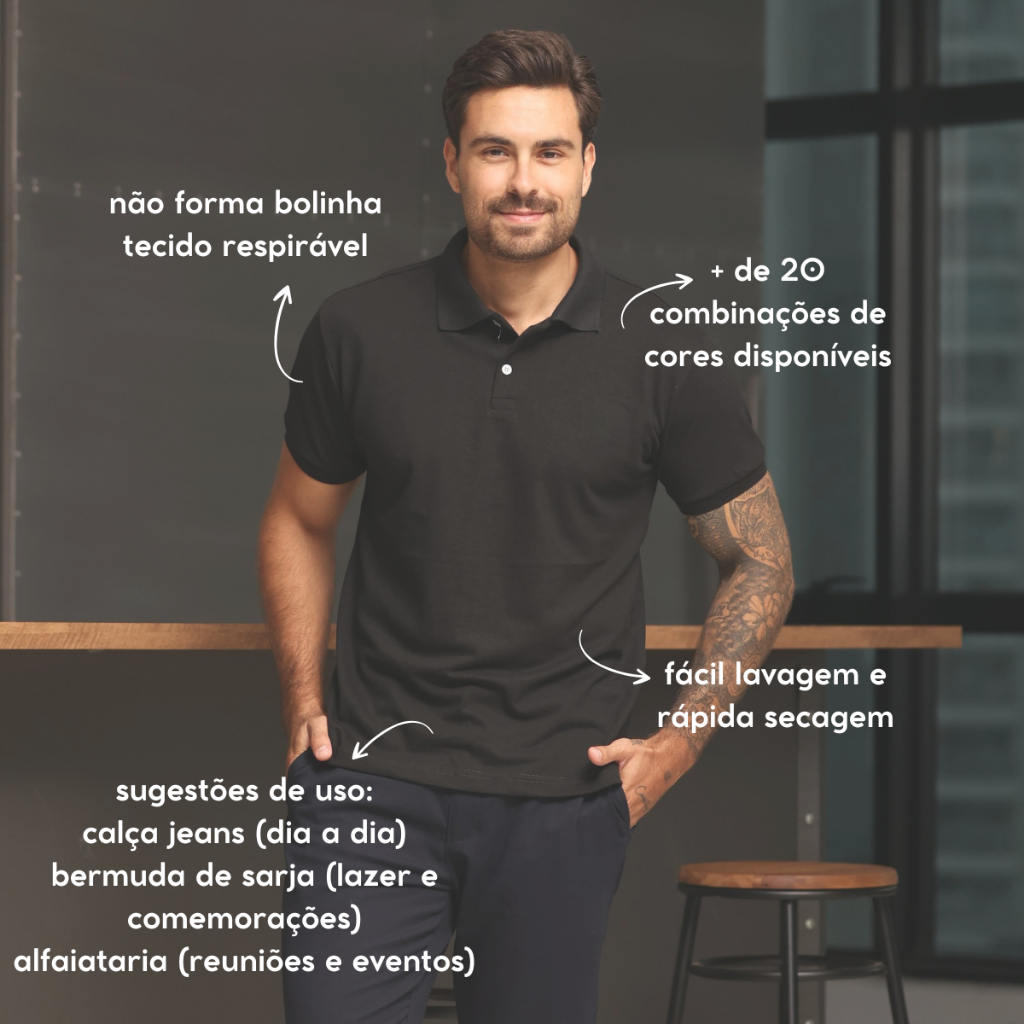 Camisa Gola Polo Masculina Piquet Premium Lisa Algodão