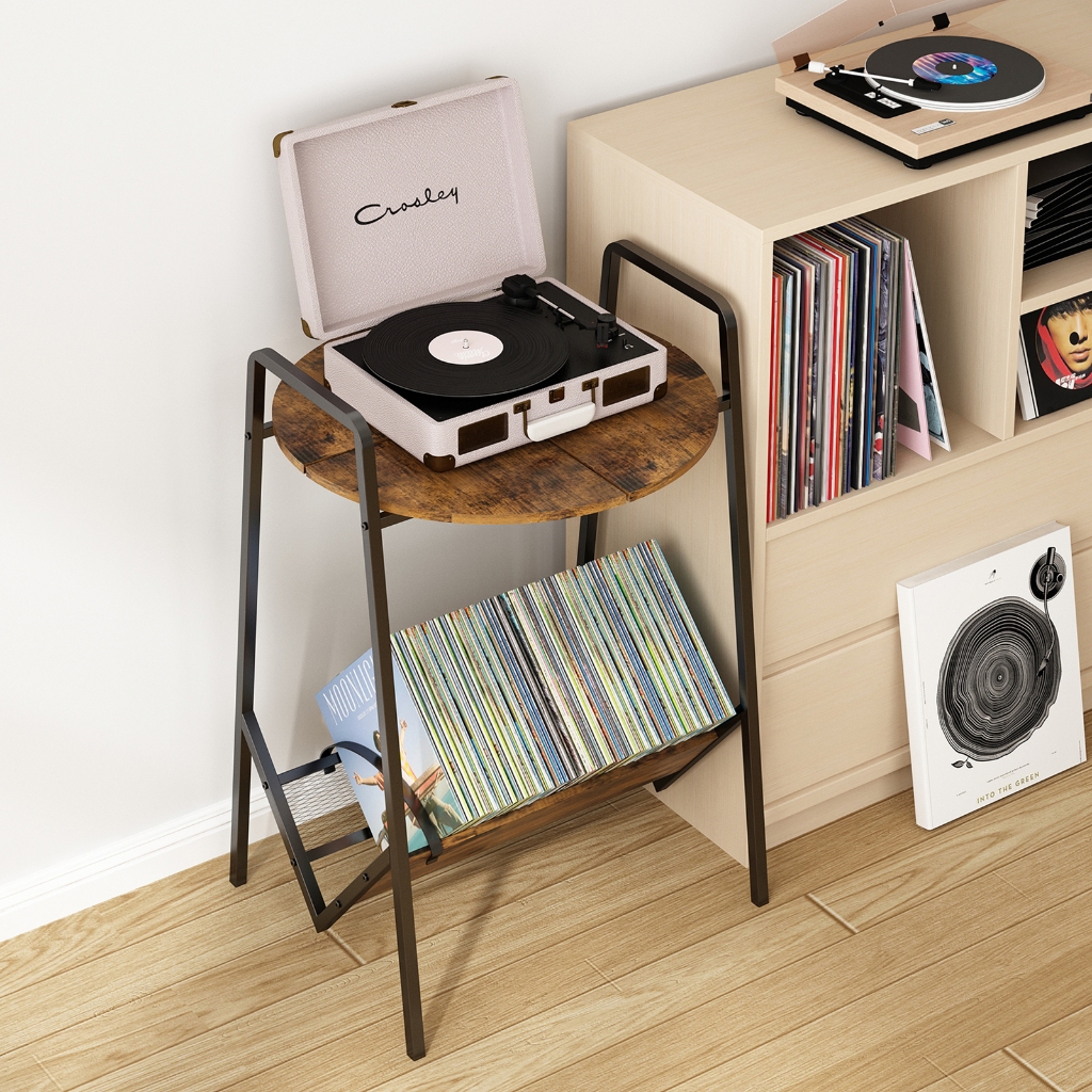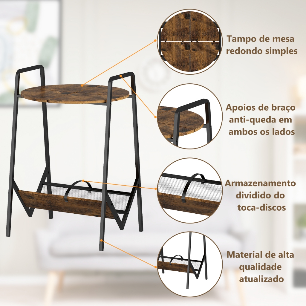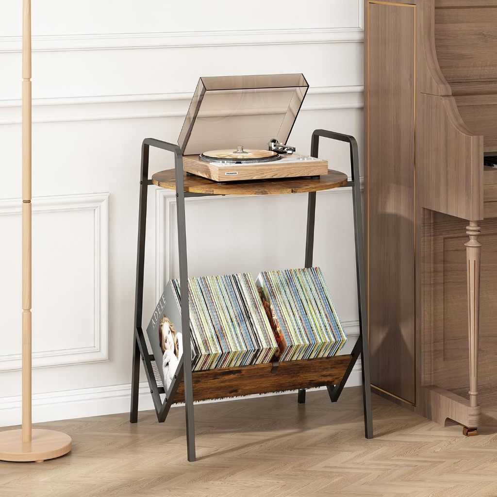 GILLAS Suporte para Toca-Discos de 2 Níveis, Mesa para Toca-Discos com Armazenamento de Discos