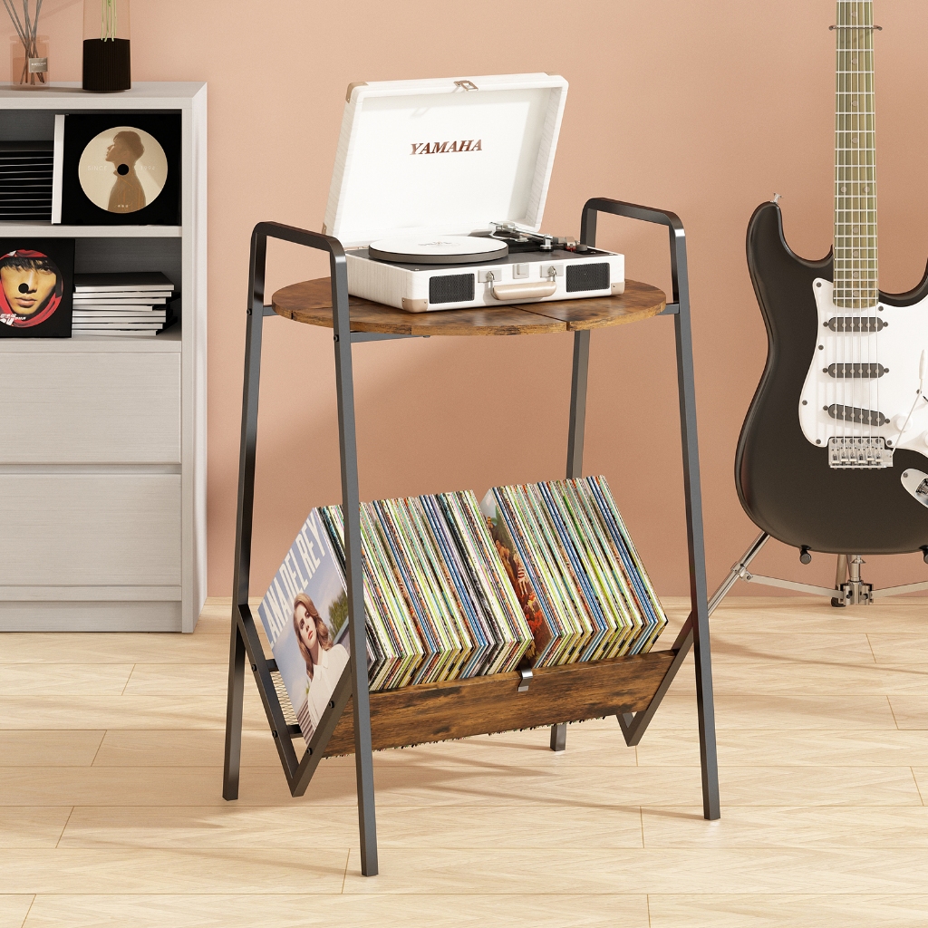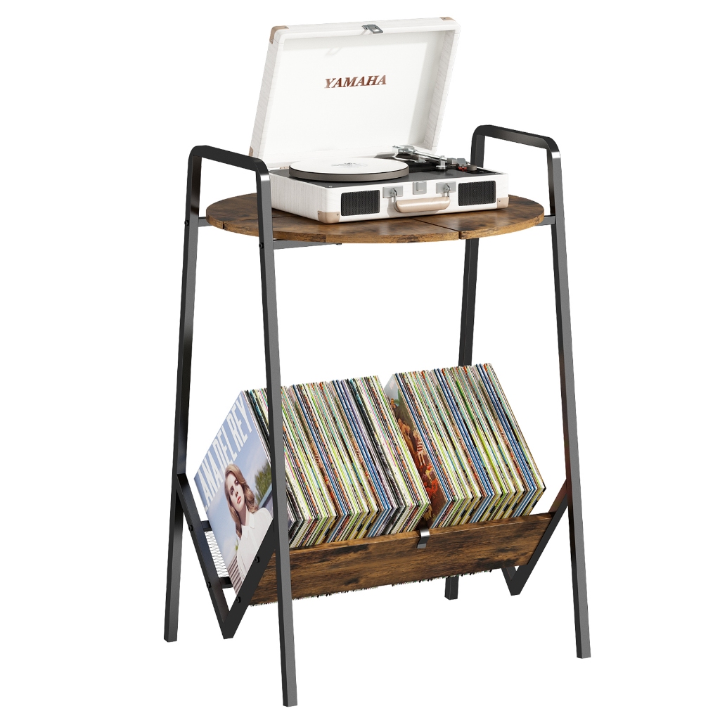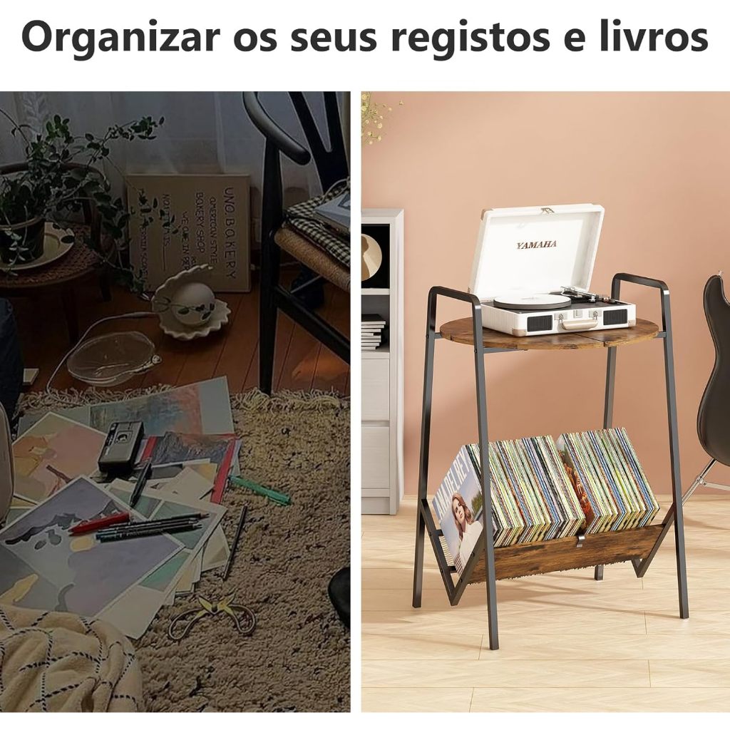 GILLAS Suporte para Toca-Discos de 2 Níveis, Mesa para Toca-Discos com Armazenamento de Discos