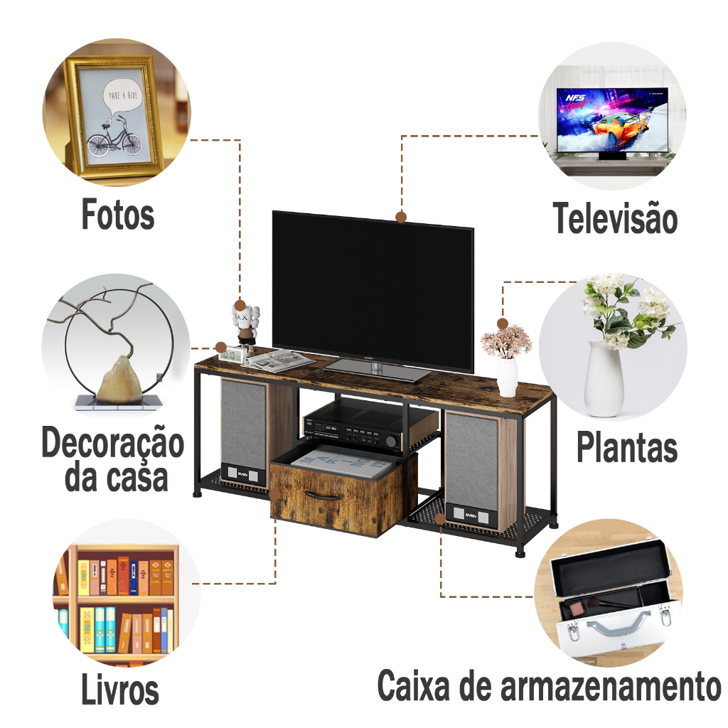 GILLAS Rack para TV, Nicho Decorativo Prateleira Parede Sala Estar Moderna, Preto Metal